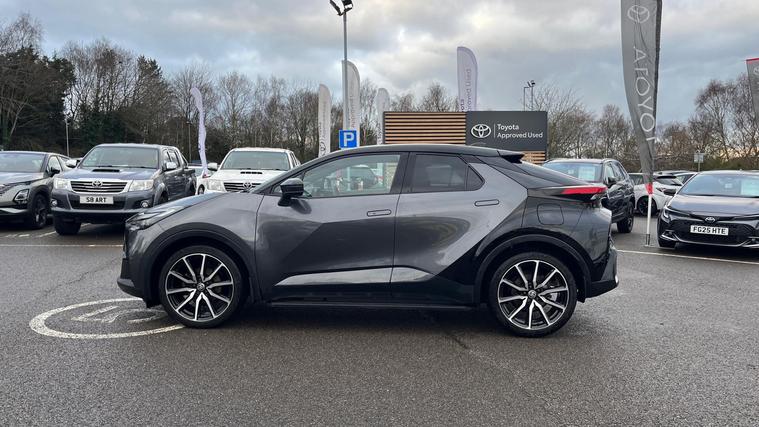 This 2025 Toyota C-HR VVT-h GR SPORT is a truly special find, having had only one owner since new. This striking GR SPORT trim model boasts a responsive 2.0 litre petrol hybrid engine, meeting Euro 6 emission standards. You'll appreciate the convenience of Smart Entry and Push Button Start, along with Bluetooth connectivity for seamless integration of your devices. Driving is made safer and more comfortable with LED headlights to illuminate your path and the Blind Spot Monitor system, which includes Blind Spot Assistance, to help keep you aware of your surroundings.Experience the impressive performance of this C-HR, with its swift 0-62mph acceleration in just 8.2 seconds, demonstrating its dynamic capability. This hybrid powertrain also contributes to low CO2 emissions, making it a more environmentally conscious choice. Furthermore, the Remote Air Conditioning system allows you to set the cabin temperature before you even step inside, adding an extra layer of comfort to your journeys. These features collectively highlight how this Toyota C-HR offers a superior driving experience compared to other vehicles in its class..