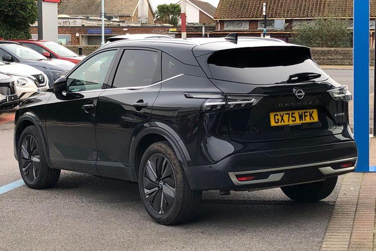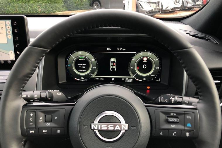 This 2025 Nissan Qashqai h e-POWER Tekna presents an exceptional opportunity with its remarkably low mileage of just 2500 miles and remaining 30 months of manufacturer warranty, further assured by its Nissan manufacturer approved status and a full service history. This Euro 6 compliant model features a 1.5 litre petrol hybrid engine, offering an impressive fuel economy of 53 miles per gallon. Inside, you'll find a wealth of comfort and convenience, including LED headlights with adaptive driving beam, a heated steering wheel, and heated front seats, alongside a wireless charging pad for your devices and advanced Blind Spot Warning for added safety.The Qashqai Tekna excels with its dynamic performance, accelerating from 0 to 62 miles per hour in a swift 7.9 seconds, demonstrating its capability. Its low CO2 emissions highlight its efficiency, making it a more environmentally conscious choice. Furthermore, the generous boot space ensures practicality for all your needs, setting it apart from many other vehicles in its class..
