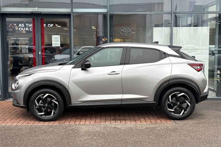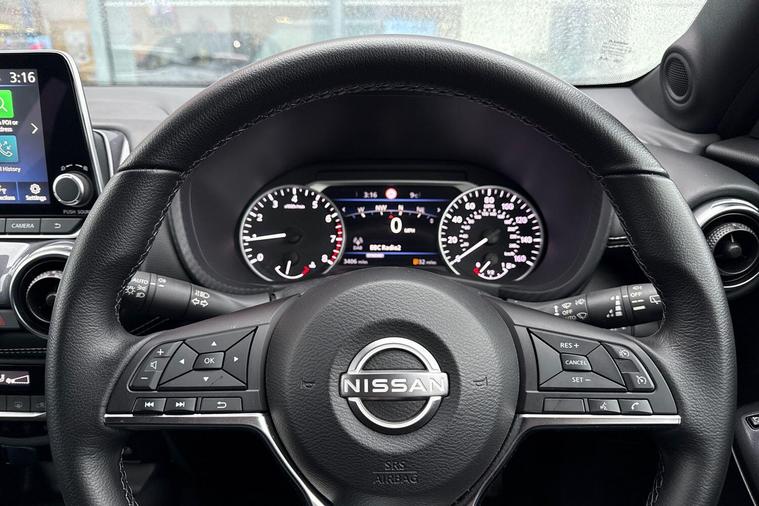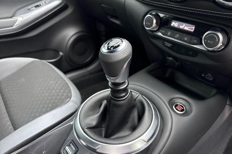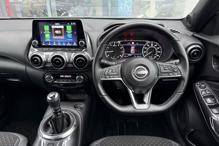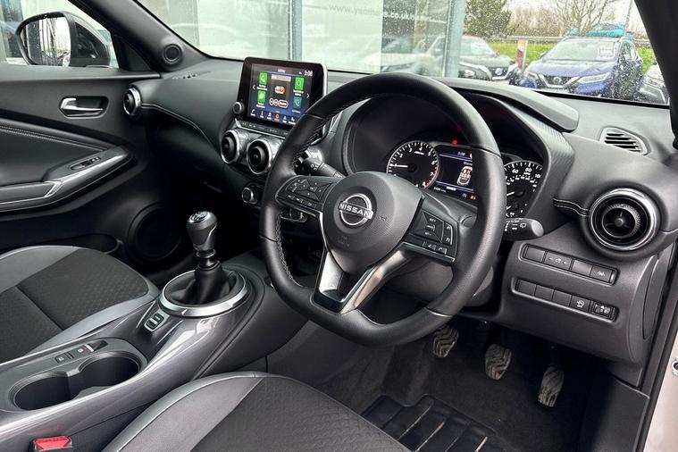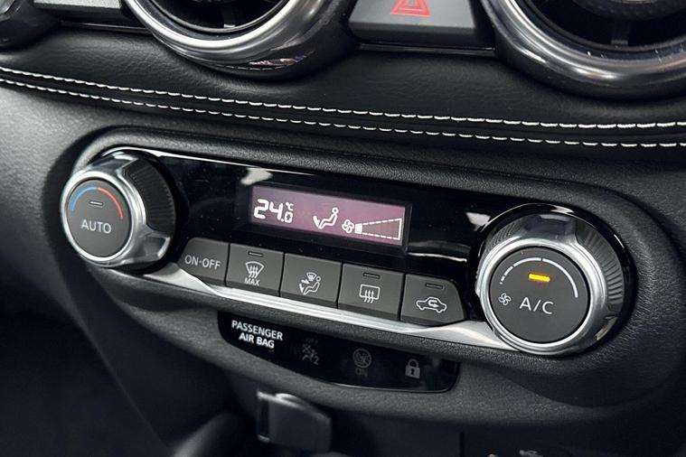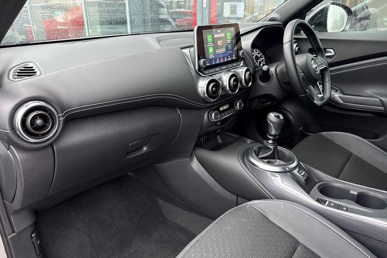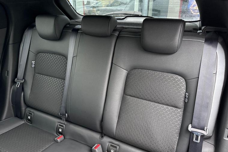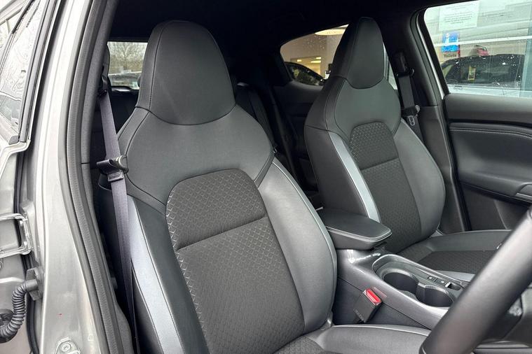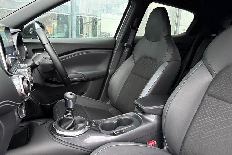 - Cloth upholstery with black and metallic grey syntech leather inserts
