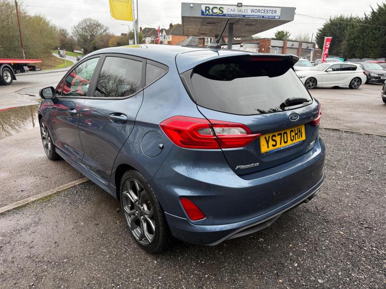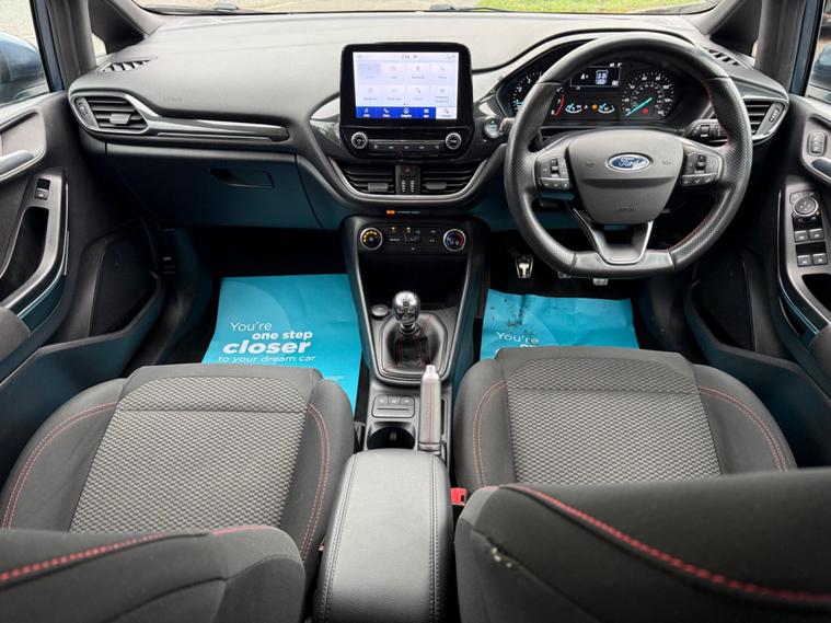 Boasting a full service history with the last service completed at 45147 miles, this 2020 Ford Fiesta T ST-Line Edition presents a well maintained example. Powered by a 1.0L petrol engine and meeting Euro 6 emission standards, this ST-Line Edition trim level offers a compelling blend of style and practicality. Inside, you will find the Ford Navigation System with Ford SYNC 3, providing seamless integration with Apple CarPlay and Android Auto, further enhanced by FordPass Connect with its embedded modem. The NCAP Pack includes automatic headlights, while LED projector headlights with daytime running lights ensure excellent visibility. Convenience is further assured with rear parking distance sensors and manual air conditioning.This Ford Fiesta is designed to impress with its performance and efficiency. The 0-62mph acceleration in just 9.4 seconds demonstrates its responsive nature, while the highlight fuel economy of 54 mpg indicates its cost effectiveness for everyday driving. Furthermore, its low CO2 emissions highlight its environmental consideration compared to many other vehicles in its class..