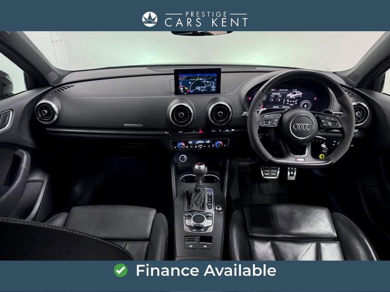 ⭐Audi RS3 2.5 TFSI GPF Saloon 4dr Petrol S Tronic quattro Euro 6⭐The Audi RS3 2.5 TFSI Saloon delivers thrilling performance, precision engineering, and unmistakable RS styling. Powered by a turbocharged 2.5-litre five-cylinder engine and paired with the S Tronic dual-clutch gearbox and quattro all-wheel-drive, it offers explosive acceleration, sharp handling, and an exhilarating driving experience. The RS-specific features combine sporty design, advanced technology, and driver-focused controls, making this saloon as fun to drive on the road as it is visually striking.Some of the features we love about this vehicle:? Audi Parking System Plus – Provides sensors and visual guidance to simplify parking and tight manoeuvres.? Cruise Control – Maintains speed for effortless motorway driving.?️ Audi Virtual Cockpit with RS Specific Display – Shows RS performance data and configurable digital instrumentation.? RS Body Styling – Aggressive exterior design elements for a bold and athletic presence.? RS Flat-Bottomed 3-Spoke Leather Multi-Function Sport Steering Wheel – Offers a sporty feel and easy access to controls.⚙️ RS Sports Suspension – Enhances handling and stability for performance-oriented driving.? RS Dual-Branch Exhaust System – Delivers a distinctive and thrilling engine sound.☎️ 01689242905? Submit an enquiry if you’d prefer to discuss over emailAt Prestige Cars Kent, we offer more than just quality vehicles. When you buy from us, you receive a 90-day guarantee, nationwide delivery, and the peace of mind that comes with a 175-point quality check. We ensure all our vehicles meet the highest standards before leaving the lot.⭐ Admin fee applies. Please confirm all specifications, as they are autogenerated ⭐.