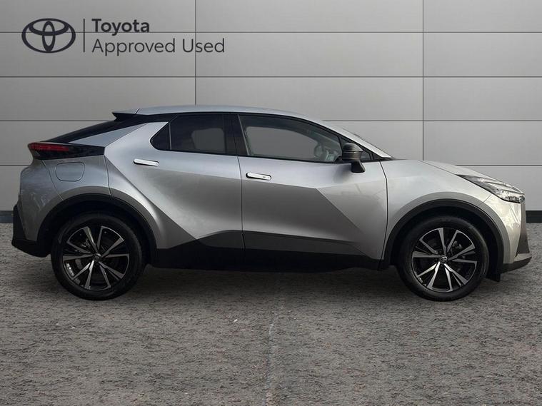 This 2024 Toyota C-HR VVT Design is a truly exceptional example, boasting an incredibly low mileage of just 7968 miles and having had only one owner from new. As a Toyota manufacturer approved vehicle, it comes with the reassurance of a 19 month warranty, and its MOT is valid until September 2027, ensuring peace of mind for the road ahead. This Euro 6 compliant model features a 2.0L Petrol Plug-in Hybrid engine, combining efficiency with performance.The Design trim level is well appointed with notable features designed to enhance your driving experience. Enjoy the convenience of LED reflector headlights, automatic headlights, and a wireless mobile phone charger. Inside, the cabin is kept at your ideal temperature with dual zone automatic air conditioning, and for added comfort during colder journeys, the steering wheel is heated. These features collectively demonstrate a superior level of specification compared to other vehicles in its class..