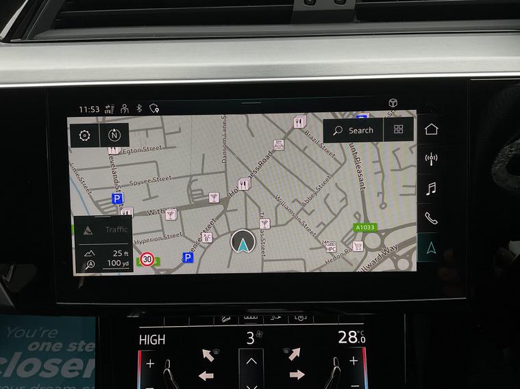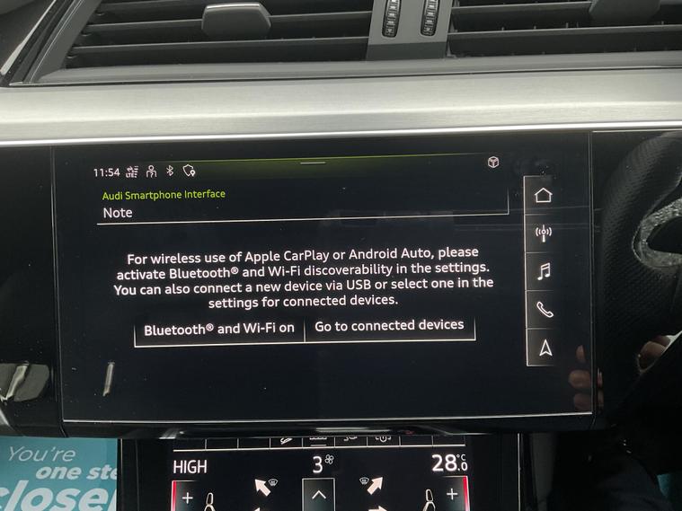This 2022 Audi e-tron Black Edition boasts an MOT valid until February 2027, offering excellent peace of mind. As an electric vehicle, it features a substantial 95 kWh battery, providing a maximum range of 251 miles when new. This four wheel drive model combines impressive performance with practicality, featuring a large boot space perfect for everyday needs and longer journeys.Experience the thrill of instant acceleration with the Audi e-tron Black Edition, capable of reaching 0-62mph in just 5.7 seconds, a testament to its advanced electric powertrain. Charging is convenient, with a full charge at home taking approximately 14 hours using a 7kW charger, and a rapid charge to 80% achievable in around 40 minutes at a public charging station. These capabilities demonstrate how this Audi e-tron offers a superior electric driving experience compared to many other vehicles..