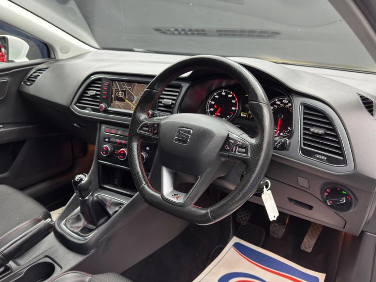 Here at Motor Gurus we are delighted to offer a SEAT Leon 1.4 TSI ACT FR. This vehicle is in very good condition when taking into consideration the vehicle's age and mileage. This specific vehicle is finished in a GLOSS WHITE and is contrasted by a BLACK LEATHER/CLOTH interior. This vehicle comes included with: FRONT & REAR PARKING SENSORS, PRIVACY GLASS, HEATED SIDE MIRRORS, PERFORATED GRIPPED LEATHER STEERING WHEEL, CRUISE CONTROL, TWIN CUPHOLDERS, CLIMATE CONTROL, SAT NAVIGATION, DAB RADIO, BLUETOOTH AUDIO, TELEPHONE CONNECTIVITY, TYRE PRESSURE MONITORING AND MUCH MORE! Our SEAT Leon 1.4 TSI ACT FR has come to us with 2 KEYS, is a 1 FORMER KEEPER (2 owners) FROM NEW and is ONLY £35 TAX! We will also provide a 12 MONTH MOT and a FRESH OIL SERVICE before it leaves our premises (OTR)..