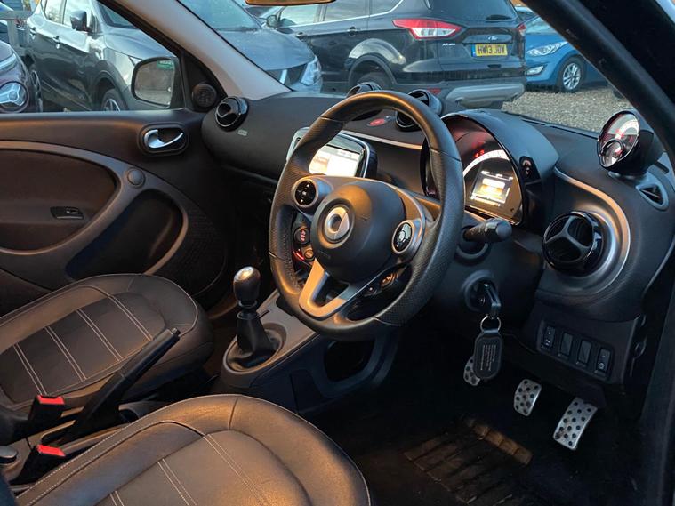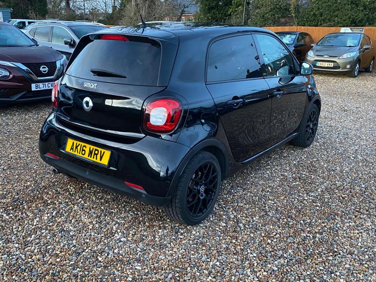 This 2016 Smart forfour T Edition Black presents an exceptional ownership proposition, having been cherished by just one owner from new and boasting a remarkably low mileage of 25, 999 miles. This Euro 6 compliant 0.9L petrol model comes with a clear vehicle history check, offering peace of mind. Inside, you'll find the Premium Package, which includes convenient Bluetooth connectivity and rear parking assistance sensors. Enjoy an open and airy cabin thanks to the panoramic roof with its integrated sun protection, and experience ultimate comfort with heated front seats. The Smart Audio System, also featuring Bluetooth, keeps you connected, while automatic climate control ensures a pleasant temperature year round.This Smart forfour T Edition Black stands out with several key advantages. Its impressive fuel economy of 66 mpg means fewer trips to the petrol station, making it an economical choice. Furthermore, its low insurance group rating indicates that running costs are kept to a minimum. The vehicle also benefits from low CO2 emissions, highlighting its efficiency and environmental consideration compared to many other cars..