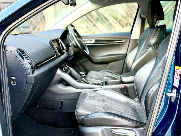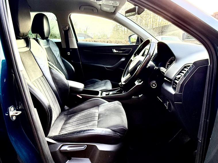 Finished in Petrol Blue metallic with black half leather/Alcantara upholstery this 2018 Skoda Karoq SE L boasts a clear vehicle history has a Full Service History, and will be serviced by us prior to sale and has an MOT valid until December 2026, and the car is sold with a 6 Month Nationwide Premium parts & labour warranty offering you peace of mind. This Euro 6 compliant 1.5 litre petrol model comes with a 6 month warranty for added security. Inside, you'll find a comfortable cabin featuring heated front seats, a DAB digital radio, and Bluetooth connectivity for your entertainment and communication needs plus Apple Car Play and Android Auto. The SE L trim also includes practical features like automatic headlights, a light and rain sensor, an auto dimming rear view mirror, and a rear view camera to assist with parking.The Skoda Karoq TSI SE L is designed to impress with its efficient performance, achieving 0-60mph in just 8.7 seconds. Its low CO2 emissions and low insurance group rating mean it is more economical to run compared to many other vehicles in its class. Furthermore, you will appreciate the generous boot space, making it an ideal choice for families or those who need ample room for luggage and shopping.See the video in the advert or use this link: https://youtu.be/naDL6BlkS-U?si=Ug6eOA2X8ma17coZ0% Deposit when financing through us.DELIVERY AVAILABLE. The Car Comes With A 6 Month Premium Nationwide Parts And Labour Warranty Finance Available From 10.9 % Apr All Inspections Welcome AA/RAC Px Welcome Viewing By Appointment Only Please Call John On 01992692105 Or 01992692105.
