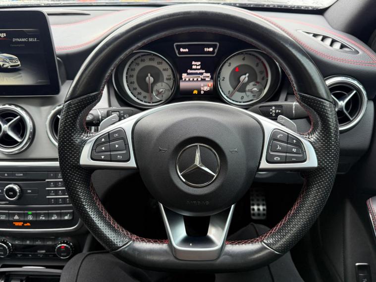 This 2016 Mercedes Benz GLA220d AMG Line (Premium Plus) offers a compelling blend of style and substance, boasting a Euro 6 compliant 2.1 litre diesel engine paired with a capable four wheel drive system. As an AMG Line model, it benefits from the sporty AMG Exclusive Package, featuring luxurious Lava Black leather upholstery and front seats with memory function for personalised comfort. This premium example also includes the Driving Assistance Package, enhancing safety with Blind Spot Assistance and Adaptive Cruise Control, alongside the convenience of Keyless Go for effortless entry and starting.Experience impressive performance with a swift 0-62mph acceleration time of just 7.7 seconds, all while achieving an excellent fuel economy of 57 mpg. This GLA also stands out with its low CO2 emissions and falls into a low insurance group, making it a cost effective choice. Furthermore, you will appreciate the generous boot space, perfect for accommodating luggage or shopping, all contributing to a superior ownership experience compared to other vehicles in its class..
