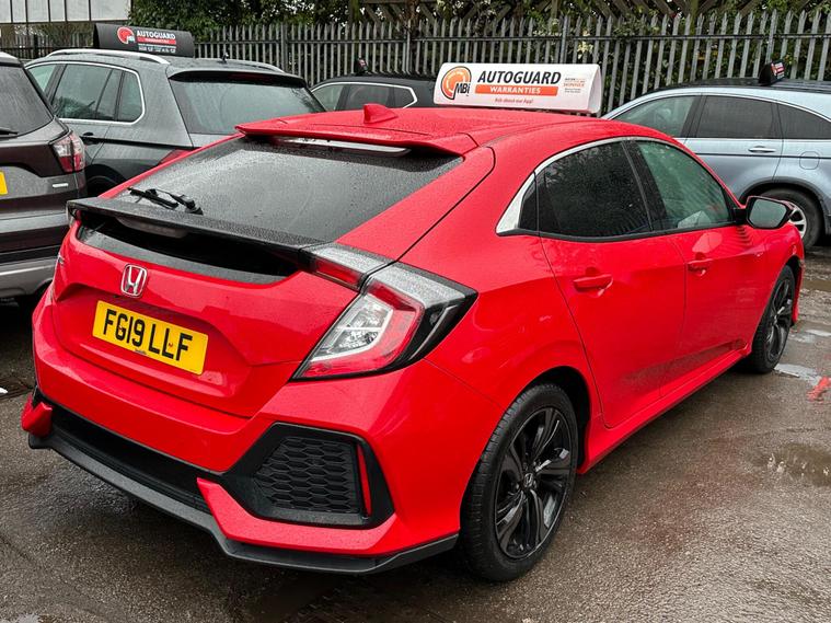 This 2019 Honda Civic VTEC Turbo SR offers a superb blend of efficiency and technology, making it an excellent choice for discerning drivers. Powered by a 1.0L Euro 6 compliant petrol engine, this model is designed for modern motoring. It comes equipped with a Dusk Sensor for automatic headlights, Intelligent Adaptive Cruise Control for relaxed journeys, and front and rear parking sensors complemented by a rear parking camera to assist with manoeuvring. The convenience of Bluetooth Hands Free Telephone is also included, ensuring you can stay connected safely.You will appreciate the generous boot space this Civic provides, offering ample room for shopping, luggage, or hobbies. Furthermore, its low CO2 emissions highlight its environmental consideration, setting it apart from many other vehicles in its class. This combination of practicality, advanced features, and efficient performance makes the 2019 Honda Civic VTEC Turbo SR a compelling and well rounded option..