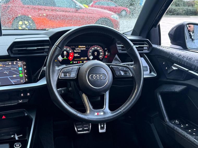 ALLOYS WILL BE REFURBED IN PREP!!!!2 KEYS, FSH, BLACK ALLOYS!!!This 2020 Audi A3 TFSI S line boasts a clear vehicle history, offering you peace of mind. Powered by a 1.5 litre petrol engine and meeting Euro 6 emissions standards, this S line trim model combines style with efficiency. Inside, you'll find a Bluetooth interface for seamless connectivity, dual zone electronic climate control to keep everyone comfortable, and a light and rain sensor that automatically manages the headlights. The advanced LED headlights with dynamic rear indicators ensure excellent visibility, while rear parking sensors make manoeuvring simple.Experience impressive performance with an acceleration of 0 to 62 miles per hour in just 8.4 seconds, a figure that demonstrates its responsiveness compared to other vehicles in its class. This Audi A3 also offers generous boot space, making it a practical choice for everyday use and longer journeys alike..