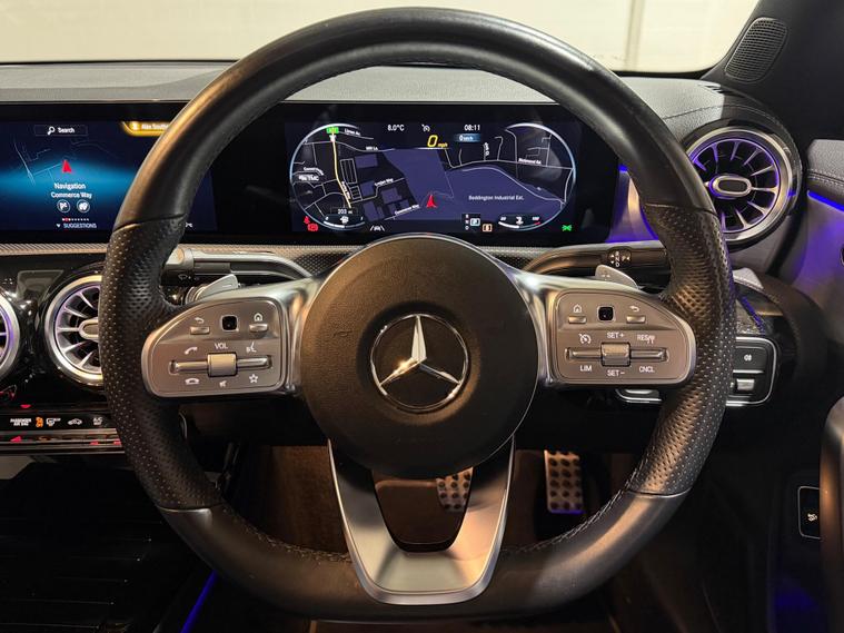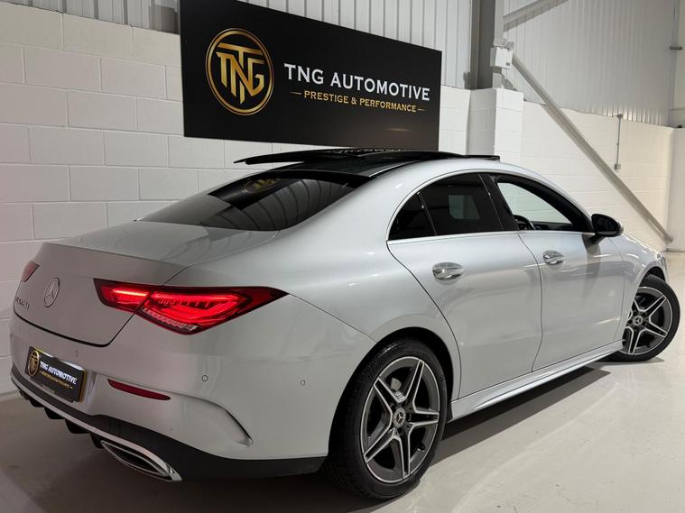 This 2021 Mercedes-Benz CLA Class 2.0 CLA220d AMG Line (Premium Plus 2) Coupe 4dr Diesel 8G-DCT Euro 6 (s/s) (190 ps) has 25000 miles on the clock and is a sleek Saloon with 4 doors, 5 seats, and ULEZ compliant. Finished in Mojave Silver, its stylish exterior features 18in Alloy Wheels - AMG 5-Twin-Spoke Design - Painted Titanium Grey with a High-Sheen Finish, AMG Bodystyling, and Beltline Strips - Chrome. The interior is adorned with Black Leather seats. This Diesel vehicle has an MOT that expires on 22/07/2026, and it's perfect for long journeys with its powerful 2.0L engine. Ideal for city driving as well, it's efficient and meets Euro 6 emission standards. Don't miss out on this luxurious and reliable car..