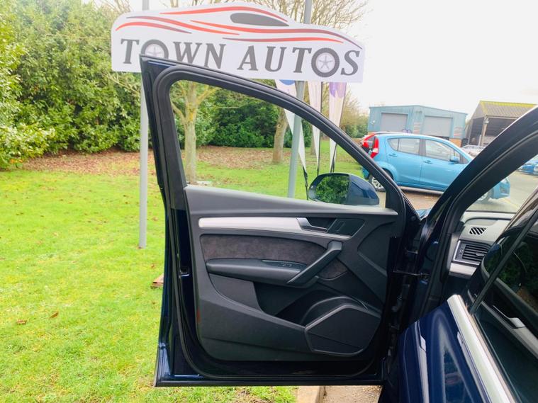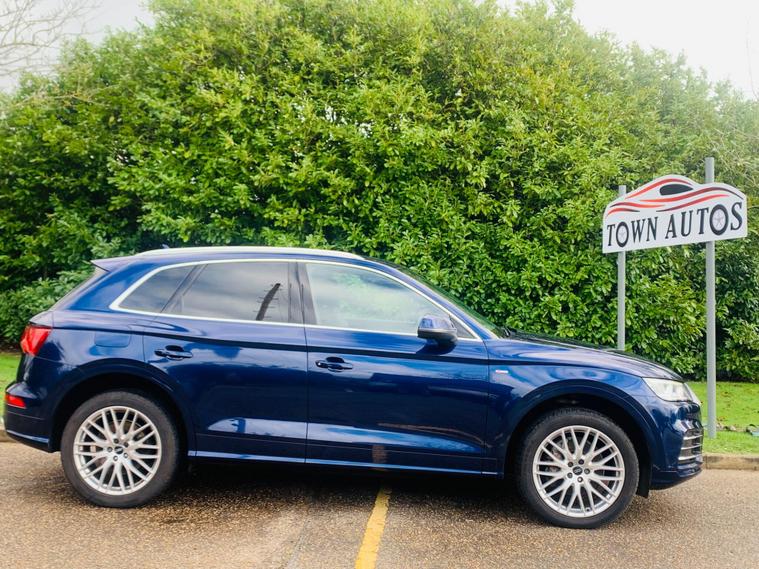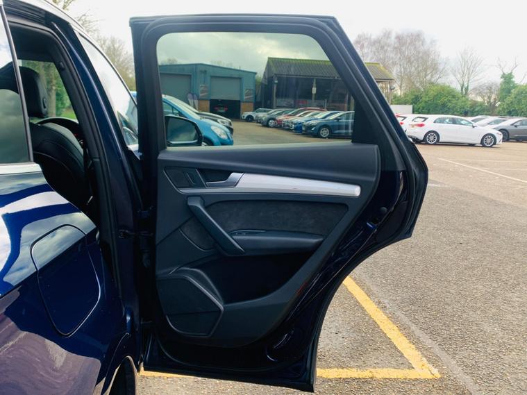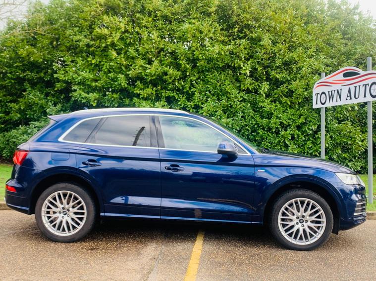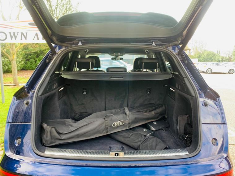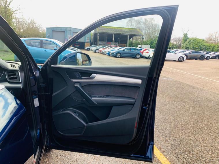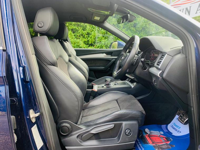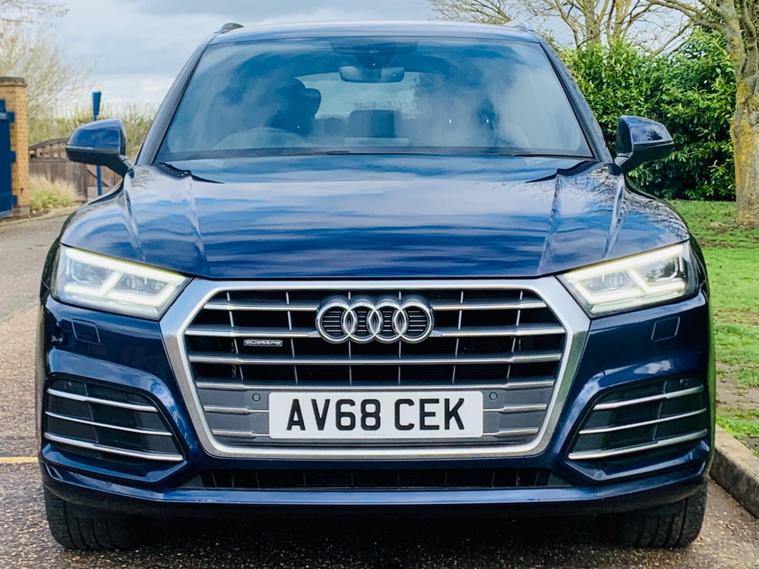 01 FORMER KEEPER, 04 SERVICES BY AUDI, LAST SERVICE BY AUDI @71K, SAPRE KEY, MOT 12/09/2026, This Audi Q5 TDI S line from 2018 boasts a clear vehicle history, offering you peace of mind. This four wheel drive model features a 2.0 litre diesel engine and meets Euro 6 emissions standards. It comes equipped with the desirable Technology Package, including wireless phone charging, and stylish 20 inch alloy wheels in a 10 Y spoke design. Parking is made easier with the Audi Parking System Plus, which includes front and rear sensors, while the light and rain sensor automatically controls the headlights. The Q5 TDI S line offers impressive performance, accelerating from 0 to 62 miles per hour in just 7.9 seconds. Its low CO2 emissions highlight its efficiency compared to other vehicles in its class. With a towing weight of 2400 kg, this Audi Q5 is a capable and well equipped choice for your motoring needs..