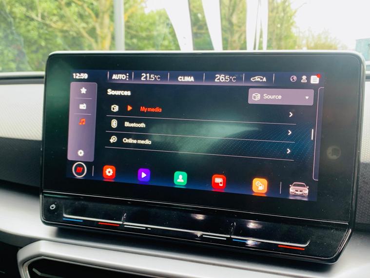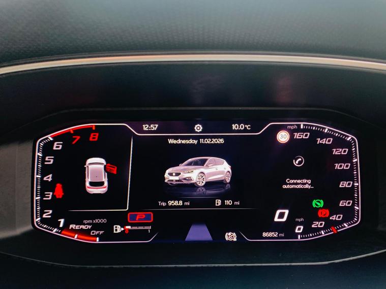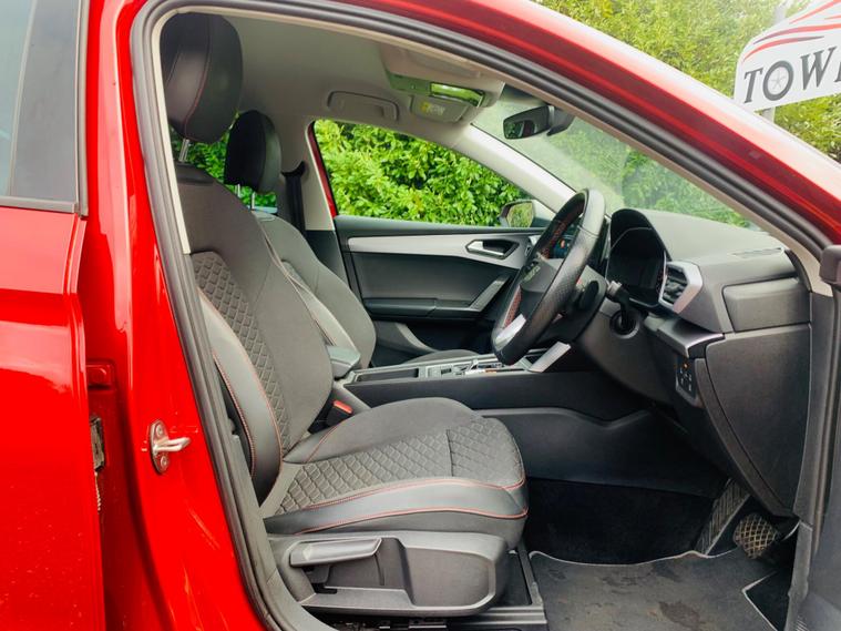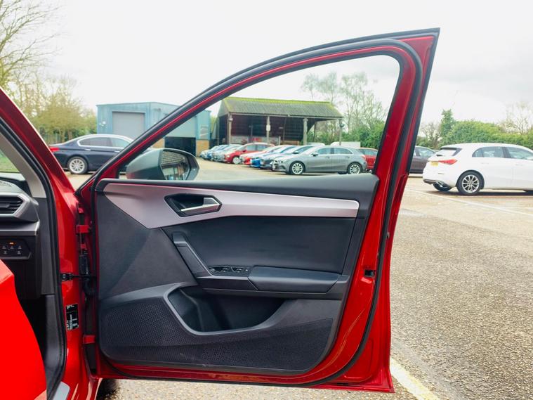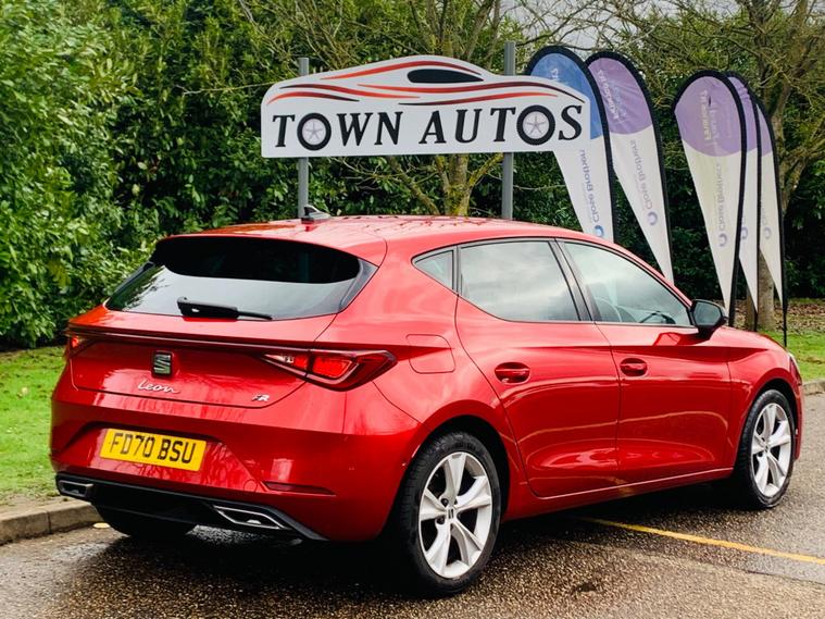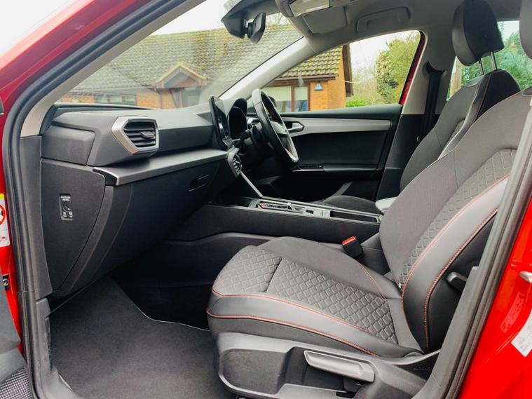 FULL SERVICE HISTORY , SPARE KEY (non tested) , REVERSE CAMERA , MOT TILL FEB 2027 , This 2021 SEAT Leon eTSI FR boasts a clear vehicle history and has had only one owner, ensuring excellent provenance. This Euro 6 compliant 1.5 litre petrol hybrid is presented in the sporty FR trim. It features separate daytime running lights with automatic headlight control and a coming home feature, alongside a convenient wireless device charger. For comfort, it offers three zone climate control, and the Media System Plus with navigation and Bluetooth keeps you connected and entertained. Parking is made simple with Park Assist, including front and rear parking sensors.The SEAT Leon eTSI FR offers impressive performance, accelerating from 0 to 62mph in just 8.7 seconds, demonstrating its dynamic capabilities. This acceleration figure indicates a more responsive driving experience compared to many similar vehicles. Furthermore, the large boot space provides ample room for luggage or shopping, making it a practical choice for everyday use and longer journeys. With its MOT valid until February 2027, this Leon is ready for many miles of enjoyable driving..