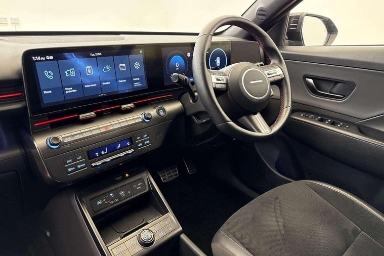 Reserve this car today for only £99 - owned from new by Hyundai UK - Latest Model Kona N-Line S - HUGE Specification Full Hybrid Automatic. Registered 2025 74 plated which has only covered a little over 5, 662 miles from new - finished in Abyss Black Paint with the stunning N-Line black interior with Red Accents.