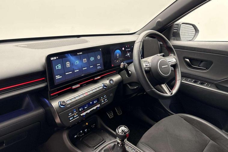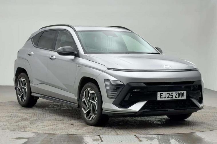 Reserve this car today for only £99 - owned from new by Hyundai UK - Latest Model Kona N-Line S DCT - HUGE Specification Full Hybrid Automatic. Registered 2025 74 plated which has only covered a little over 9, 831 miles from new - finished in Shimmering Silver Paint with the stunning N-Line black interior with Red Accents.