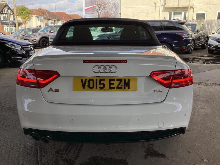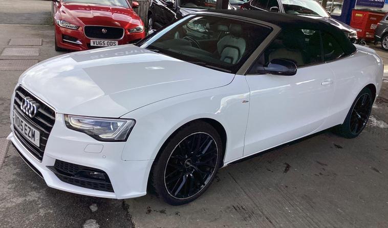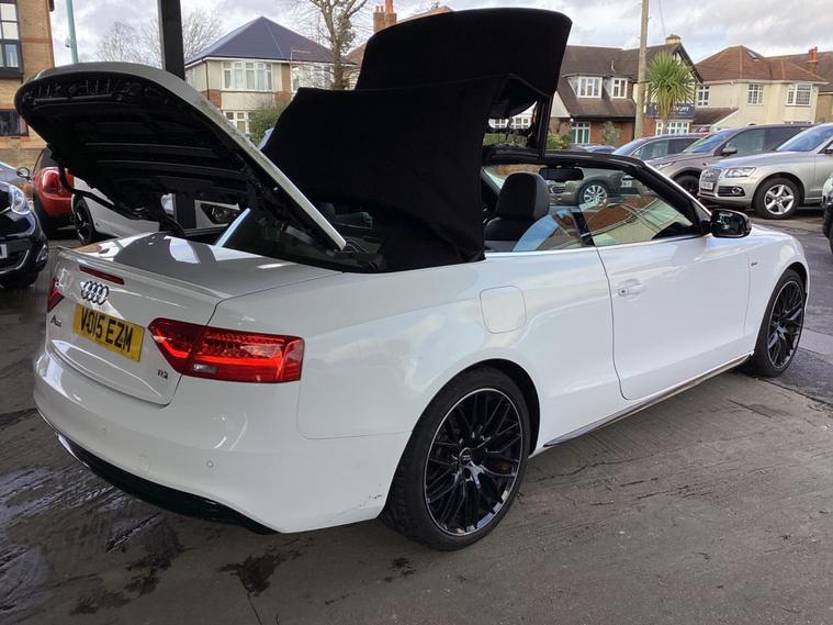 SERVICE HISTORY ** 2 KEYS PRESENT READ OUR HONEST CUSTOMER 5 STAR REVIEWS ON GOOGLE, YOU'LL BE PLEASED YOU CHOSE US** PRICED AT THE ''BUY IT NOW PRICE'' SAVE £100'S!!! This 2015 Audi A5 Cabriolet TDI S line Special Edition Plus is a standout example, having been cherished by just one owner from new and boasting a remarkably low mileage of 75, 000 miles for its age. This premium convertible features a powerful yet efficient 2.0 litre diesel engine, paired with the sporty S line Special Edition Plus trim. Inside, you'll find a host of desirable features including a 3 spoke multifunction flat bottomed steering wheel, an Audi Exclusive aluminium gear knob, and Bluetooth connectivity for seamless mobile phone integration. For your entertainment and convenience, it comes equipped with a luxurious Bang and Olufsen sound system and Audi Parking System Plus with rear sensors to assist with parking manoeuvres.This A5 Cabriolet offers an exceptional ownership proposition, highlighted by its impressive fuel economy of 58 miles per gallon, making it more economical than many similar vehicles. Furthermore, it boasts low CO2 emissions, contributing to a more environmentally conscious drive. Practicality is also a strong point, with generous boot space that ensures you don't have to compromise on luggage for those longer journeys or weekend getaways. This combination of performance, luxury, and efficiency makes this Audi A5 Cabriolet a truly compelling choice..