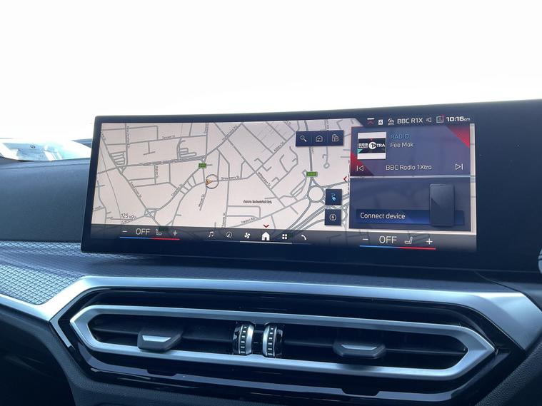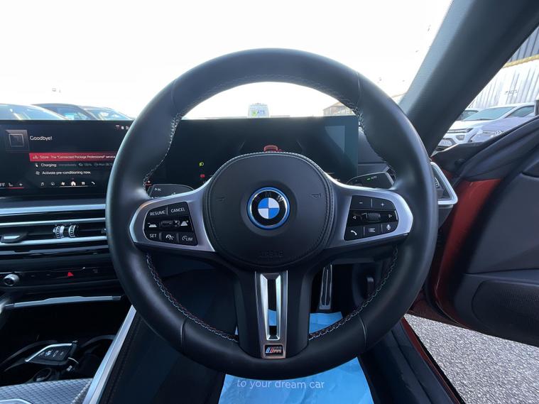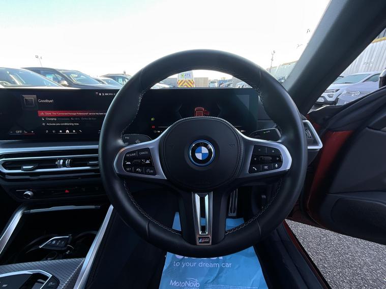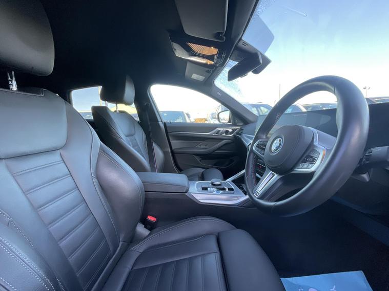 This 2024 BMW i4 M50 offers exceptional peace of mind with its MOT valid until May 2027. As a fully electric, four wheel drive model, this i4 M50 boasts a substantial 84 kWh battery, providing a new vehicle maximum range of 316 miles. Charging at home using a 7kW charger will take approximately 12 hours and 30 minutes, while rapid public charging can replenish the battery from empty to 80% in just 34 minutes. This impressive electric vehicle also features a large boot space, making it practical for everyday use and longer journeys.The performance of this BMW i4 M50 is truly remarkable, with an acceleration of 0 to 62mph achieved in a mere 3.9 seconds. This rapid acceleration highlights how the i4 M50 outperforms many other vehicles in its class. Combined with its extensive 316 mile range, this electric BMW is designed for both exhilarating driving and efficient, long distance travel..