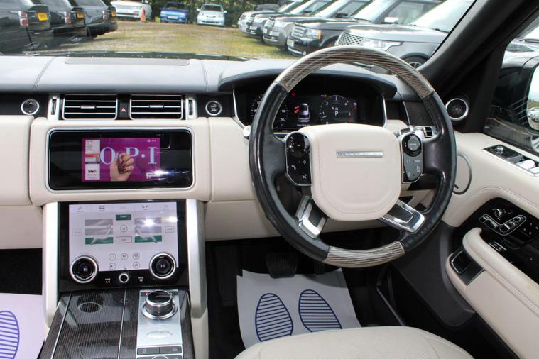 THE VOGUE CENTRE THE UK'S LARGEST RANGE ROVER SPECIALIST ARE PLEASED TO OFFER THIS 2019 MODEL YEAR RANGE ROVER 4.4 SDV8 AUTOBIOGRAPHY WITH HUGE OPTIONAL EXTRAS ( SEE SPEC LIST ). ONLY 1 OWNER FROM BRAND NEW WITH LAND ROVER MAIN DEALER HISTORY, JUST BEEN FULLY SERVICED AND INSPECTED, ONLY £195 A YEAR ROAD TAX, FINISHED IN SANTORINI BLACK WITH FULL IVORY HIDE AND KALAHARI VENEER FINISHERS -- FREE 6 MONTHS PARTS AND LABOUR WARRANTY INCLUDING BREAKDOWN COVER AND COURTESY CAR -- FREE 12 MONTHS AA COVER OR 12 MONTHS UPGRADED AA COVER IF YOU ARE ALREADY A AA MEMBER -- FREE FULL MOT WITH EVEN THE ADVISORIES DONE -- FULL INSPECTION WITH ANY FAULTS FIXED BACKED UP BY A 30 DAYS MONEY BACK GUARANTEE -- Executive rear seats with electric arm rest - Black pack - 22'' alloy wheels in black - Pixel-laser LED Headlights with Signature DRL Electric rear armrest - Driver Assist Pack - Heated Leather/wood Steering Wheel - Meridian Sound System - Traffic Sign Recognition with Lane Departure Warning - Opening panoramic glass Roof - Heated/cooled front and rear seats with full body massage - 360 surround cameras - Blind spot monitor - High beam assist - Soft close doors plus auto open and close tailgate - Winged headrests - Fridge - Leather headlining - Extended nappa leather to doors and dash - Adaptive Cruise Control with Queue Assist - Timed climate - Freeview digital TV tuner - Navigation System TMC (Dynamic Route Guidance) - Digital Radio (DAB) - Bluetooth audio streaming --- FINANCE AVAILABLE AT VERY COMPETITIVE RATES -- WE ARE A FAMILY RUN RANGE ROVER VOGUE SPECIALIST AND HAVE THE BIGGEST SELECTION IN THE UK WITH UP TO 70 RANGE ROVER VOGUE'S IN STOCK PLEASE SEE OUR WEB SITE dealer's website FOR FULL STOCK LIST AND UP TO 50 HD PICTURES OR IF YOU NEED ANYTHING RANGE ROVER PLEASE CALL ME JAMES DIRECT ON 01619702169.