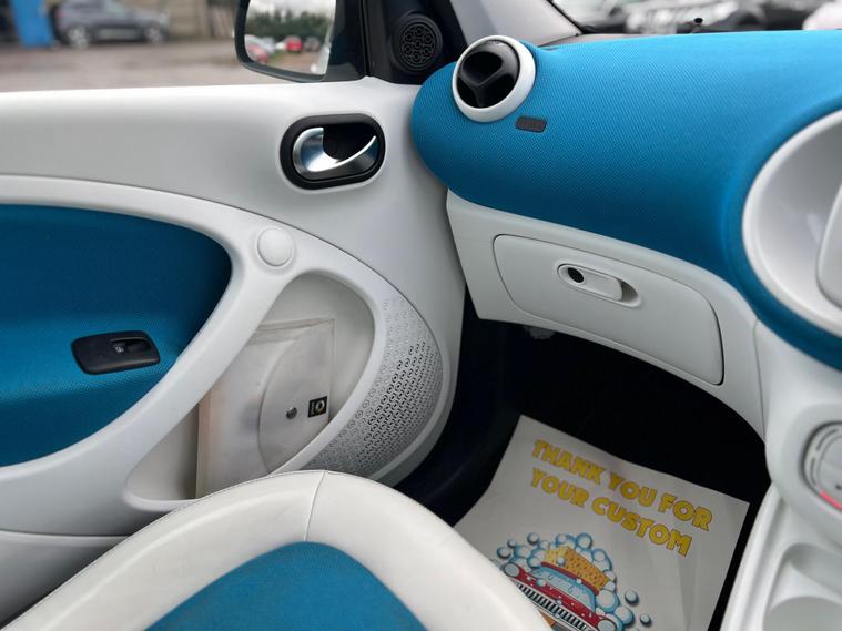 Discover this 2016 Smart forfour T Proxy, a stylish and practical city car that offers an exceptional ownership experience. This Euro 6 compliant model boasts a responsive 0.9L petrol engine and is presented in the desirable Proxy trim. You'll appreciate the convenience of the Bluetooth hands free system, allowing for seamless connectivity on the go. Navigating tight spaces is made effortless with the rear parking assistance, complete with sensors and a rear view camera. Enjoy an airy cabin thanks to the panoramic roof with sun protection, and benefit from the automatic headlights that adjust to changing light conditions.This Smart forfour T Proxy stands out with its impressive fuel economy, achieving a remarkable 66 miles per gallon, which indicates it is more economical than many similar vehicles. Furthermore, its low insurance group rating suggests that running costs will be kept to a minimum. The low CO2 emissions also highlight its environmental consideration compared to other cars in its class. This combination of efficiency, affordability, and thoughtful features makes this Smart forfour a compelling choice for urban driving..