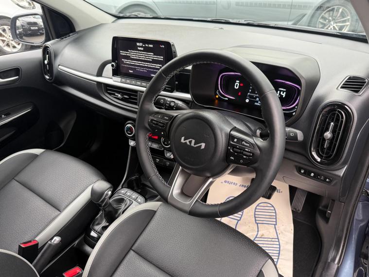 Discover this exceptional 2025 Kia Picanto 3, boasting remarkably low mileage for its age at just 2000 miles. This Euro 6 compliant model is powered by an efficient 1.0L petrol engine and features a smart entry system with a start stop button, allowing for keyless entry and ignition. Inside, you'll appreciate the convenience of automatic air conditioning, a heated steering wheel for those colder mornings, and a wireless mobile phone charger to keep your devices powered up on the go. The striking LED front lightbar ensures excellent visibility.This Kia Picanto 3 offers significant advantages over other vehicles in its class. Its low CO2 emissions contribute to a more environmentally friendly drive, while its low insurance group rating means more affordable ownership. These highlights, combined with its minimal mileage and desirable features, make this Picanto a truly compelling choice for those seeking a practical and economical compact car..
