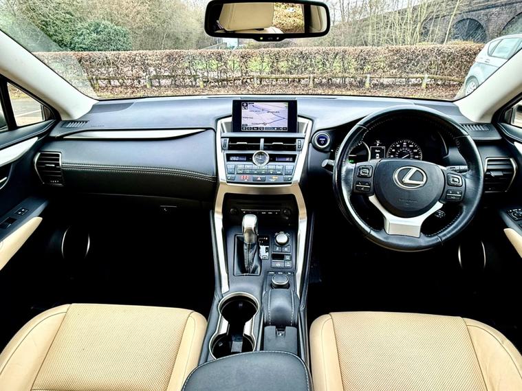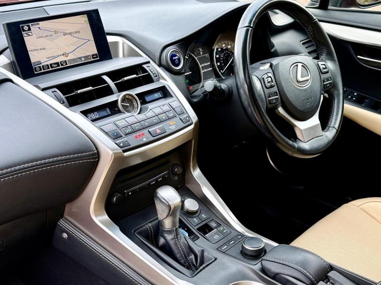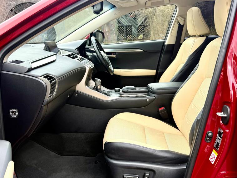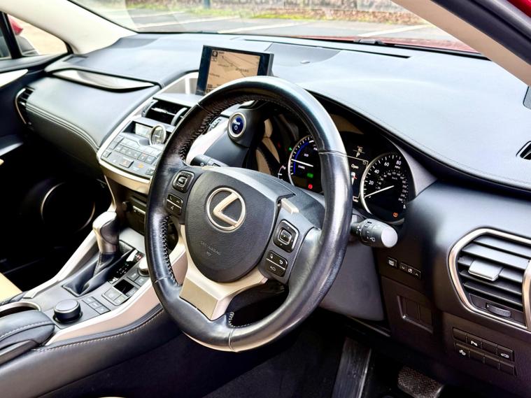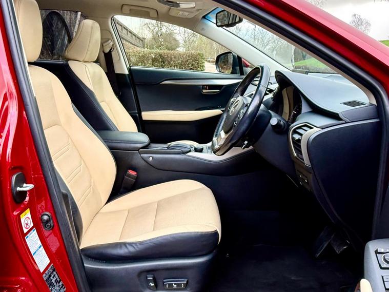 Finished in Matador Red Metallic with Stunning Black and Cream leather upholstery this Lexus NX 300h Luxury from 2015 boasts a full service history and has had only one owner, ensuring excellent provenance. This Four Wheel Drive model features a 2.5 litre petrol hybrid engine and meets Euro 6 emissions standards. It comes equipped with desirable features such as heated front seats, a reversing camera with back guide lines, and smart and easy entry for convenient access. The adaptive cruise control with pre-crash safety adds to the driving experience, all managed through the Lexus Media Display which includes Bluetooth connectivity and a branded sound system with DAB digital Radio. The Multi-Function steering wheel gives you access to the audio and phone controls as well as the cruise control. The Tilt and Slide Glass sunroof offers fresh air and an airy environment for the passengers.The MOT is valid until May 2026, and the vehicle has a clear history check, offering peace of mind. The last service was completed on 7th May 2025 at 81, 284 miles, and a six month Nationwide parts & labour warranty is included. The large boot space is a practical highlight, making this NX 300h Luxury a versatile choice. These combined factors, including its single ownership and comprehensive servicing, demonstrate that this vehicle has been exceptionally well cared for, setting it apart from other similar models on the market.SEE THE VIDEO IN THE ADVERT or use this link. https://youtu.be/8_Nx_OLXrDI?si=dw22URLB2ybmQx2X0% Deposit when financing through us.DELIVERY AVAILABLE. The Car Comes With A 6 Month Premium Nationwide Parts And Labour Warranty Finance Available From 10.9 % Apr All Inspections Welcome AA/RAC Px Welcome Viewing By Appointment Only Please Call John On 01992692105 Or 01992692105.