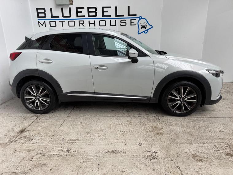 Bluebell Motorhouse is proud to present to you a fantastic example of this Mazda CX-3 1.5 SKYACTIV-D Sport Nav. This vehicle offers an incredible amount of options from factory, some of which include Satellite Navigation, Electric windows, Electric folding mirrors, Heated front seats, Reverse camera, rear sensors, Auto lights, Auto wipers, Air Conditioning, Cruise control, aux, bluetooth, DAB, Radio CD player, BOSE Sound system, Keyless entry & start, Auto lights/Wipers and much more! This particular vehicle also impresses with a part service history. The current MOT expires on 13/11/2026 and it also has 2 keys. The car is finished in the Manufacturer colour of Aero Grey with Half leather seats and 18 inch alloy wheels. This car is in excellent condition throughout, maybe the odd light mark and chips around the car but all fitting with age and mileage. It starts and drives very well. Any inspection is welcome. 3 Months In House Warranty included with basic AA 12 months Breakdown Cover which can be extended to the UK's only Trading Standards approved warranty, administered by The Motoring Organisation-subject to terms and conditions, with more info directly on our website under the warranty section. **SERVICE AND INSPECTION WILL BE PROVIDED** Low interest finance available.