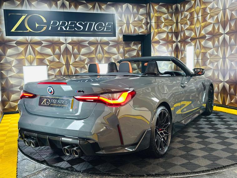 Buy with confidence at ZG Prestige. We are Highly Rated by Auto Trader, recognised as one of the Top 5 Car Dealerships in the UK by CarDealer, and proud to be AA Approved, FCA Regulated, and part of The Motor Ombudsman. With Excellent ratings across Google, eBay, Motors, CarGurus, and PistonHeads, we deliver a trusted service from the town’s largest indoor prestige showroom. Featured Vehicle: BMW M4 3.0 BiTurbo Competition Steptronic M xDrive Euro 6 (s/s) 2dr in Dravit Grey with Black-Kyalami Orange Interior. Supplied with 2 Keys, Full Dealership Service History AND under a BMW service plane until 2028. Last Service Carried Out On 29/01/2026. First MOT Due Upon Sale. Excellent condition both inside and out. Our detailed inspection will include replacing any worn wear and tear items like Tyres and Brakes. Some of the Great Specification Includes Ultimate Package, M Carbon Bucket Seats, M Carbon Package and So Much More. When you buy from ZG Prestige, on this vehicle you will receive a FREE 12-Months Premium Warranty with nationwide coverage, no limit on claims, direct payment to the repairing garage, and protection against mechanical and electrical faults. You can extend the warranty for up to 36 months. Every car also includes 12 months AA Breakdown Cover, a clear Experian HPI report, and a 120+ point pre-delivery inspection including a full computer scan report. We offer nationwide delivery, flexible low-rate finance (PCP & HP) with 0% deposit, unbeatable part-exchange prices, and a 14-day money-back guarantee for complete peace of mind. Virtual appointments are available via phone, WhatsApp, or video call—buy from home, hassle-free. Reserve today for just £99 (Completely refundable). Contact us 24/7 on WhatsApp at 01204219868 or visit dealer's website