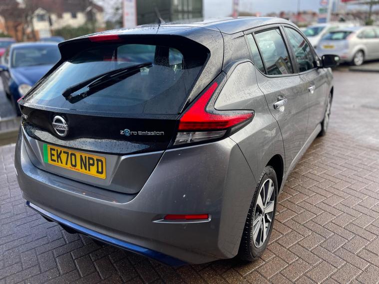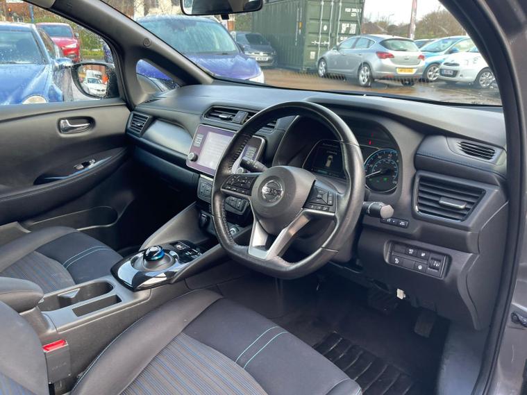 This 2021 Nissan Leaf Acenta offers an excellent opportunity to embrace electric driving with its efficient 40 kWh battery, providing a maximum range of 168 miles when new. This model benefits from a full charge at home in approximately 7 hours and 30 minutes using a 7kW charger, and can reach 80% charge in just 1 hour and 20 minutes at a rapid public charging point. Key features include Nissan i Key with keyless entry, seamless integration with Android Auto and Apple CarPlay, and a helpful rear view camera for parking assistance.Further enhancing your driving experience, this Leaf Acenta is equipped with Intelligent Auto Headlights that feature a Follow Me Home function and automatic hazard lights, along with Blind Spot Warning to alert you to vehicles in your blind spots. The generous boot space ensures practicality for everyday needs and longer journeys. These features collectively demonstrate how this Nissan Leaf Acenta provides a refined and convenient electric vehicle solution..
