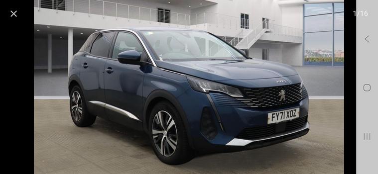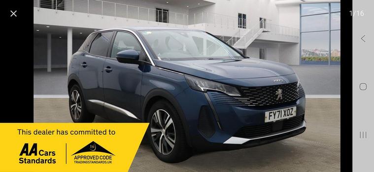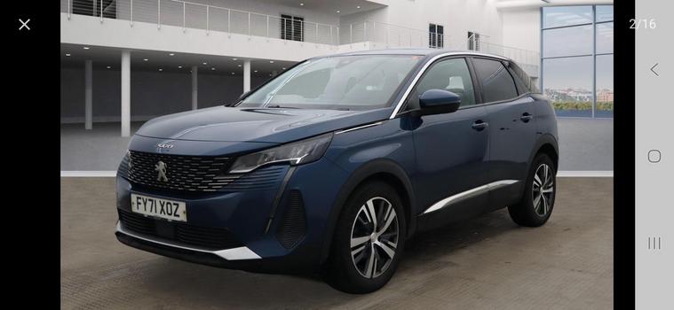 Peugeot 3008 1.5 BlueHDi Allure Euro 6 (s/s) 5dr in great condition - One previous who owner well maintained the car - ULEZ free - The car was fully serviced last month - HPI Clear - 2x Keys - parking Sensors - Climate Control - Leather Trim - 18'' Alloy Wheels - Privacy Glass // 12 months AA breakdown cover included// We offer the option of an extended national warranty of up to 3 years // Driveaway insurance available // PX Welcome // This 2021 Peugeot 3008 BlueHDi Allure boasts a clear vehicle history and has had only one owner from new. This stylish SUV is powered by an efficient 1.5 litre Euro 6 diesel engine, offering impressive fuel economy of up to 61 miles per gallon. It comes equipped with a Bluetooth telephone facility for seamless connectivity, and Mirror Screen technology that includes Apple CarPlay and Android Auto, allowing you to easily access your smartphone apps. For added convenience and safety, it features rear parking aid with sensors and a 180 degree colour reversing camera with a wash system. The Eco LED headlights provide excellent visibility while consuming less energy.The large boot space in this Peugeot 3008 ensures you have plenty of room for luggage, shopping, or sports equipment, making it a practical choice for families and individuals alike. Its low CO2 emissions are a testament to its efficient design, positioning it favourably against other vehicles in its class. With an MOT valid until August 2026, this well maintained 3008 Allure offers peace of mind and a compelling blend of style, technology, and economy..