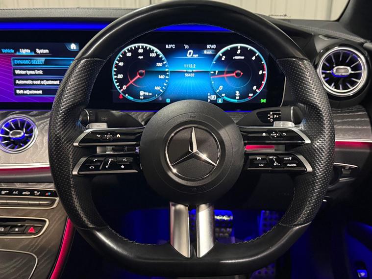 This 2021 Mercedes Benz E Class E220d AMG Line (Premium Plus) boasts a clear vehicle history, offering you peace of mind. Powered by a 2.0L Euro 6 diesel engine, this automatic transmission vehicle combines efficiency with performance. The AMG Line trim enhances its sporty appeal, while the Premium Plus designation signifies a wealth of desirable features. You'll appreciate the convenience of the Reversing Camera and Active Park Assist, which includes front and rear parking sensors, making manoeuvring effortless. Illumination is provided by LED High Performance headlamps with integrated daytime running lights, ensuring excellent visibility.Inside, the E Class offers a comfortable and connected experience. Automatic Climate Control with two zones allows you to tailor the cabin temperature to your preferences, and the Audio 20 USB system with Bluetooth connectivity keeps you entertained and in touch. Beyond these comforts, the generous boot space provides ample room for luggage or shopping, demonstrating how this E Class is designed for practicality. This combination of advanced technology, refined comfort, and spaciousness sets it apart..