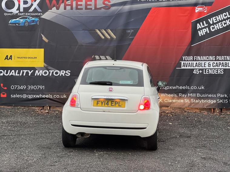 Presented by QPX Wheels, this 2014 (14) Fiat 500 1.2 Pop finished in White has covered 83, 000 miles and has had 2 owners from new. A stylish, economical and ULEZ compliant city car that’s cheap to run, easy to drive and perfect for new drivers or daily commuting.Driver Assistance & Technology:Electric power steering City mode, start/stop technology, trip computer, radio/CD player with USB connectivity, steering wheel controls and daytime running lights. Light clutch and smooth 5-speed manual gearbox make it ideal for urban driving.Interior & Comfort Specification:Cloth interior with iconic Fiat styling, air conditioning, electric front windows, height adjustable driver’s seat, split folding rear seats and compact yet practical boot space. A fun, affordable hatchback with low running costs and timeless design.Due to high demand, early booking of viewings is recommended. Arrange yours via our website https:/ dealer's website or by calling +44 (0)7349390791Our friendly team will look after you before, during and after the sales. We will help you with taxing the vehicle, completing official forms, and we will make sure that you, your family and loved ones are safe on the road. We also offer a wide range of warranties and finance to meet your needs. WHO WE AREWe are a car dealership with 16 years of experience, based in Clarence Street, Stalybridge, SK15 1QF. We are 100% sure that we can find you the right vehicle as we offer over 150 cars for sale at any time. OUR QUALITY PROMISE- Every car comes with our FREE 3 Months warranty- We offer a fresh MOT for all vehicles due for one within the next 3 months. - All our vehicles are HPI Clear and undergo a 39-Point check, conducted by professional inspectors. - Every vehicle is valeted and sanitised to a high standard. - We are able to offer delivery nationwide at competitive prices, don't hesitate to contact us for a quote.FINANCE, PART EXCHANGE OR A STRAIGHT PURCHASE IS AVAILABLE. QPX Wheels Team.https:/ dealer's website