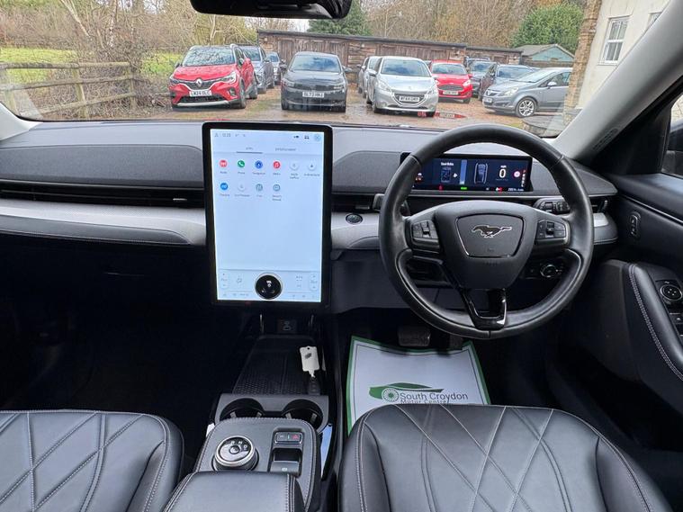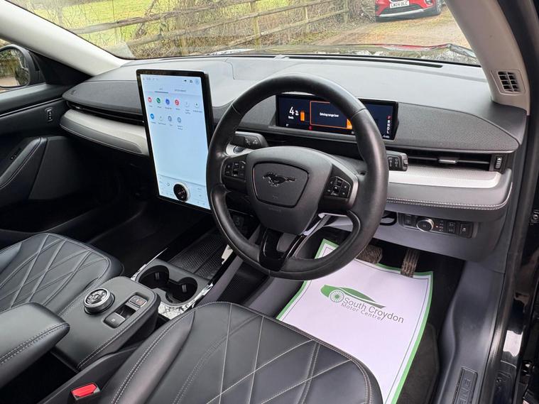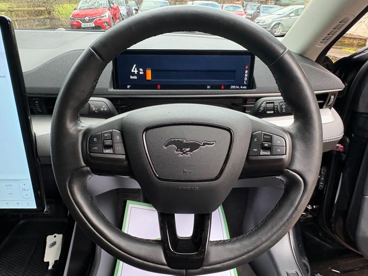 This 2022 Ford Mustang Mach E Standard Range presents an exceptional opportunity with remarkably low mileage for its age, having covered just 29514 miles. As an electric vehicle, it offers a compelling blend of performance and efficiency, boasting a battery total capacity of 76 kWh. This allows for a maximum range of 273 miles when new, ensuring your journeys are both extensive and environmentally conscious. Charging at home with a 7kW charger takes approximately 11 hours and 24 minutes for a full charge, while rapid public charging can take you from empty to 80% in as little as 43 minutes.Experience the thrill of instant acceleration with a 0-62mph time of just 6.9 seconds, a performance that sets this Mustang Mach E apart from many other electric vehicles. The driving experience is further enhanced by advanced technology, including Adaptive Cruise Control with Stop and Go and Lane Centering, ensuring a more relaxed and safer drive. Stay connected and in control with the Next Generation SYNC system, featuring Connected Navigation and Natural Voice Search, complemented by Bluetooth connectivity. For added convenience and safety, this model is equipped with a Rear View Camera and striking LED Reflector Headlamps..