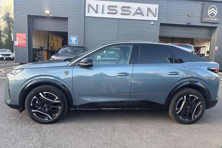 This 2025 Peugeot E-3008 GT is a remarkable example, boasting a single owner and an exceptionally low mileage of just 4298 miles, making it a standout choice. As a fully electric vehicle, it offers a substantial battery capacity of 81 kWh, providing a maximum range of 326 miles from new. This GT trim level comes equipped with a suite of advanced features, including rear parking sensors with parking assistance, automatic dual zone climate control for personalised comfort, and a convenient smartphone wireless charger. Driving visibility is enhanced by Pixel LED technology headlights featuring adaptive high beam assist, complemented by automatic headlights.The Peugeot E-3008 GT is designed for practicality and modern convenience. Its full charging time at home using a 7kW charger is approximately 8 hours, while rapid public charging can take an empty battery to 80% in just 40 minutes. This vehicle also benefits from a full service history and comes Peugeot manufacturer approved, offering peace of mind alongside its 12 months warranty. A key highlight is its impressive boot space, offering ample room for all your needs. The low mileage and single owner status clearly indicate that this vehicle has been meticulously cared for, setting it apart from other similar models on the market..
