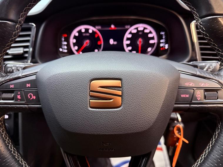 - Flat Bottomed-Perforated Leather Steering Wheel with White Stitching and CUPRA Logo