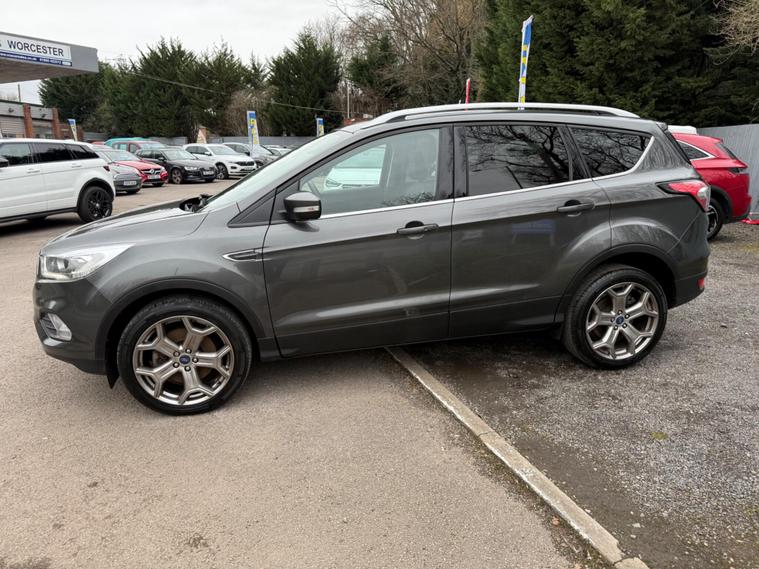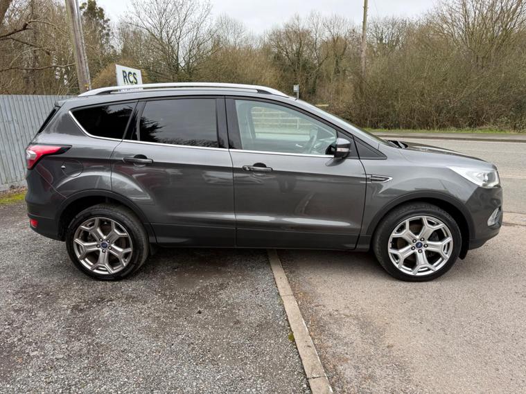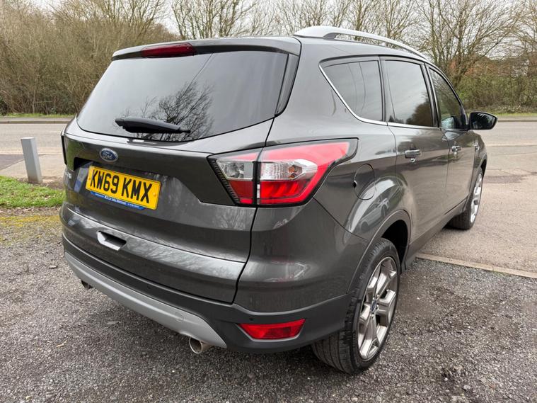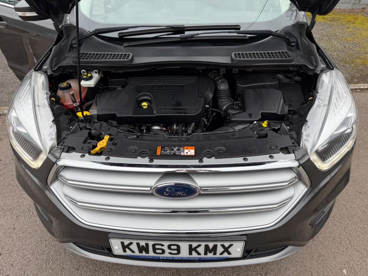 This 2019 Ford Kuga TDCi Titanium Edition presents a compelling proposition with its comprehensive service history, having last been serviced at 87, 882 miles. This well maintained example is powered by a 2.0L Diesel engine, meeting Euro 6 emission standards and contributing to its low CO2 emissions. The Titanium Edition trim level ensures a refined driving experience, complemented by striking 19in Y Spoke Luster Nickel alloy wheels.Further enhancing this Ford Kuga are its practical and advanced features. Automatic halogen headlights with LED daytime running lights provide excellent visibility, while the DEATC Dual-Zone Electronic Automatic Temperature Control ensures comfort for all occupants. Connectivity and entertainment are seamlessly integrated through the Ford SYNC3 DAB Navigation System, which includes Android Auto and Apple CarPlay, alongside Bluetooth functionality. For added convenience and safety, rear parking sensors are also fitted, making manoeuvring easier..