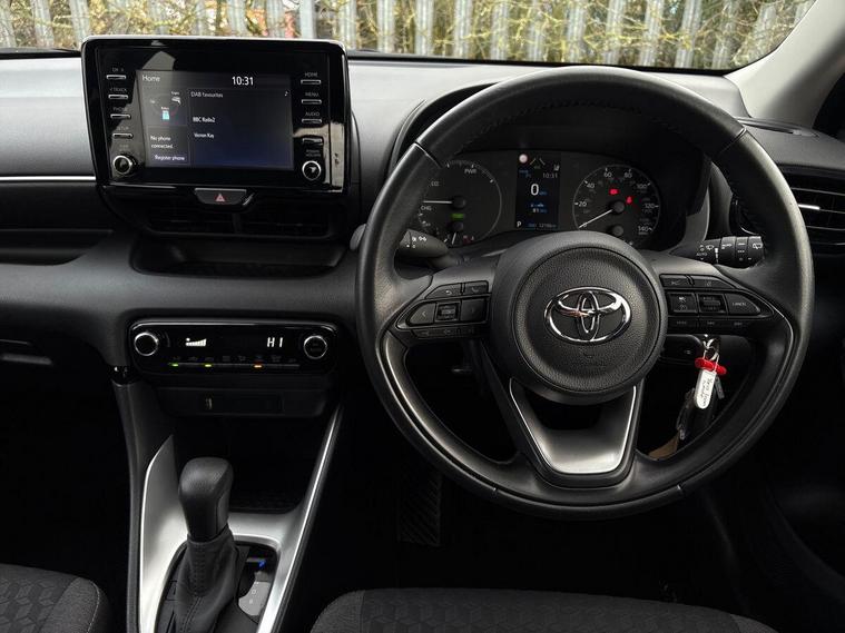 This 2023 Toyota Yaris VVT-h Icon is a superb example, boasting a single owner and an impressively low mileage of just 12, 186 miles, all backed by a 12 month warranty and Toyota manufacturer approval. This Euro 6 compliant, 1.5L petrol hybrid model offers a refined driving experience, enhanced by notable features such as Adaptive Cruise Control, a reversing camera for easier parking, and automatic headlights. Stay connected on the go with seamless smartphone integration, including Apple CarPlay and Android Auto, making every journey more convenient and enjoyable.The highlights of this Toyota Yaris truly set it apart. Its exceptional fuel economy of 69 mpg means you can travel further for less, while its low insurance group and low CO2 emissions demonstrate its cost effectiveness and environmental consideration compared to similar vehicles. This Yaris Icon represents a smart choice for those seeking reliability, efficiency, and modern technology in a compact and stylish package..