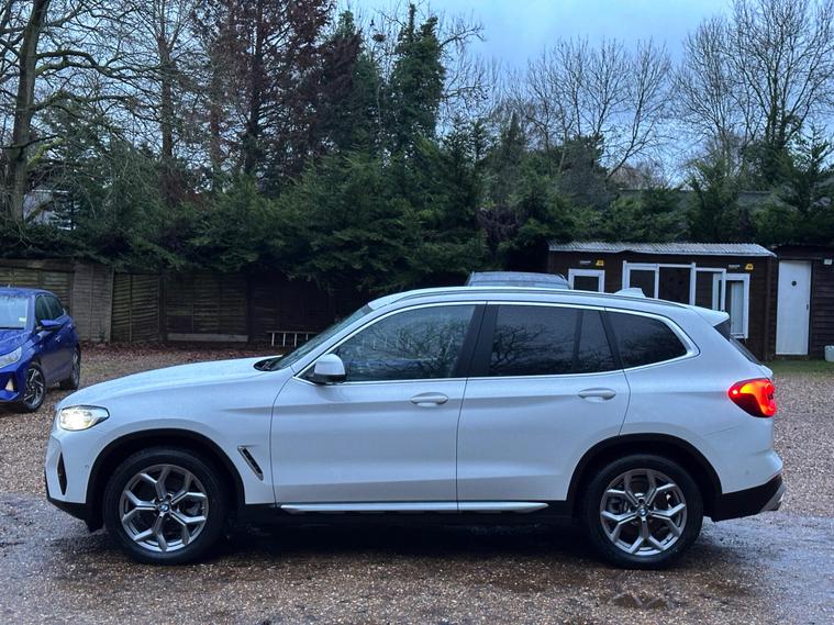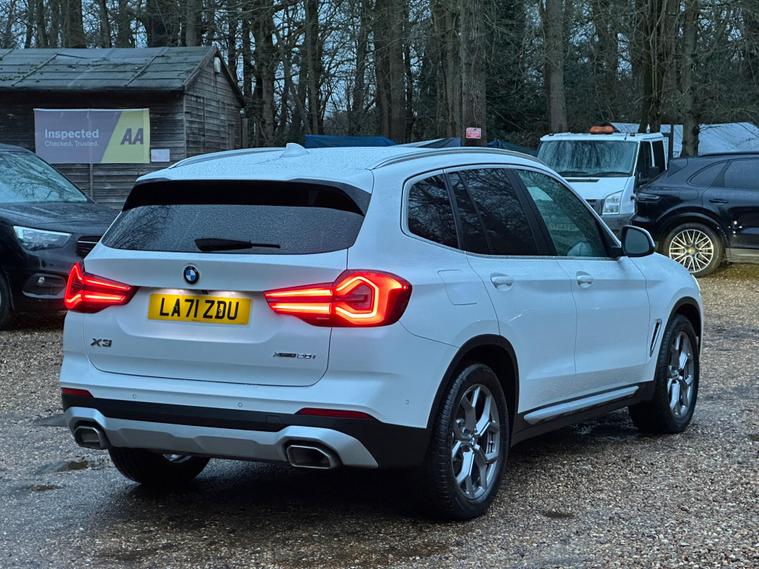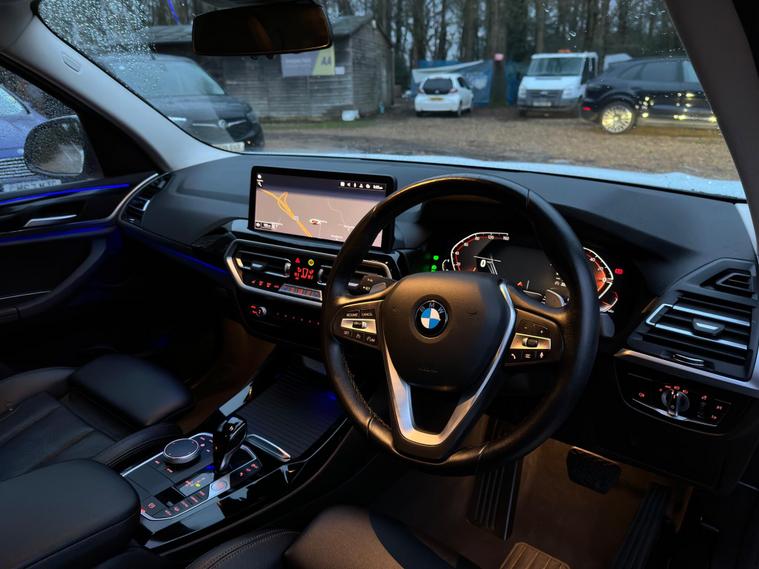 This 2022 BMW X3 20i xLine presents an exceptional ownership proposition, having been driven only 24, 169 miles by its sole owner. This Euro 6 compliant, four wheel drive model boasts a 2.0 litre petrol hybrid engine, offering a blend of efficiency and performance. Inside, you'll find comfort and convenience with automatic three zone air conditioning and heated front seats. The xLine trim ensures a premium experience, complemented by advanced driver aids.The X3's practicality is evident with its generous boot space, perfect for all your needs. For effortless manoeuvring, it features Parking Assistant Plus, which includes a 360 degree camera and front and rear parking sensors, alongside a reversing assist camera. This BMW X3 accelerates from 0 to 62mph in a brisk 8.4 seconds, demonstrating its capability. These features collectively highlight how this particular X3 offers a superior driving and ownership experience compared to others on the market..