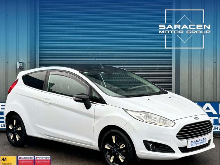 Ford Fiesta 1.0 Zetec White Edition Autumn 3dr Euro 6 ULEZ FREE. Finished in Frozen White/ contrasting Candy Blue roof with black cloth interior and white contrast stitching. 15'' gloss black alloy wheels with contrasting white spokes, Ford DAB with Ford SYNC, Ford Eco Mode, White Edition exterior pack, electrically operated one touch front windows, rear privacy glass, electrically operated/ heated/ power folding door mirrors, Quickclear front windscreen, LED DRL's, leather trimmed 3-spoke steering wheel with volume control, air conditioning.Here at Saracen Motor Group we have been awarded AA Platinum dealership recognition along with being nominated for best customer service by Autotrader for 2021, 2022, 2023, 2024 & 2025. We are a 5-star dealership with over 600 5-star reviews across all internet platforms including Autotrader and have been regarded as one of the best dealerships to buy from in the UK.Our preparation team inspects each vehicle to the highest level possible for its age and mileage. You can rest assured your next car has been cared for to the highest standard. Service history, V5 and the HPI certificate will all be present on viewing and collection. With our location based in Battlesbridge, Essex you can enjoy a haggle-free buying experience where you can drive away the same day if prior arranged, additional fees apply please see our website for details..