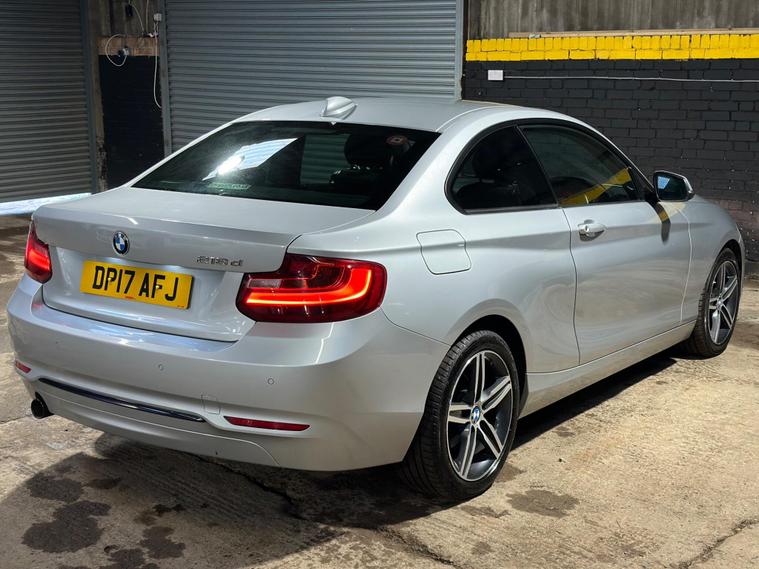 BMW 2 Series 2.0 218d Sport Euro 6 (s/s) 2dr. A very well-maintained vehicle presented in Silver. The car is ULEZ Compliant with only 3 previous owners and a full service history. It includes 17inch Alloy Wheels, Sport Trim Level, Keyless Start, Automatic Headlights with Rain Sensor, Cruise Control with Brake Function, Tyre Pressure Monitoring System, Air Conditioning, Dual Zone Climate Control, Electric Windows, Front and Rear Sensors with Park Distance Control, Dynamic Stability Control Plus, Optimum Shift Indicator, Sun Protection Glazing and the Sun Protection Package, Windscreen with a Grey Shade Band, DAB Digital Radio, Bluetooth Hands-Free Facility with USB Audio Interface and Audio Streaming, AUX/USB Connection Ports, Alarm System, Isofix, and many more extras and luxurious features to maximise comfort. A guaranteed mileage at 68, 700. The car comes with, 6 months warranty, 12 months roadside assistance, 12 months roadside cover, drive away insurance. Car looks amazing and feels great to drive. Recently inspected by the AA with no faults. First to come will buy. UK delivery, finance options and virtual viewings are available. Please do not hesitate to contact us for any enquiries, viewings and inspections..
