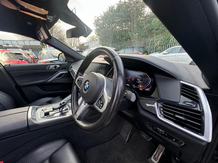 This 2021 BMW X6 30d M Sport offers a sophisticated blend of performance and luxury, featuring a powerful 3.0L Diesel Hybrid engine and a responsive Four Wheel Drive system. As a Euro 6 compliant vehicle, it meets stringent emission standards. The M Sport trim enhances its dynamic appeal, complemented by striking M Carbon Side Mirror Caps. Inside, you'll find exquisite Carbon Fibre interior trim and a Comfort Package that includes Keyless Entry, heated seats, and memory seat functions for ultimate convenience. The Technology Package adds a Head Up Display, keeping essential information in your line of sight.Experience an elevated sense of space and light with the Panorama Glass Roof Sky Lounge, which includes an opening panoramic sunroof. This X6 boasts impressive acceleration, reaching 0-62mph in just 6.1 seconds, demonstrating its sporty capabilities. Furthermore, the generous boot space ensures practicality for all your needs. These features collectively highlight how this BMW X6 provides a superior driving experience compared to other vehicles in its class, offering a refined and engaging journey..