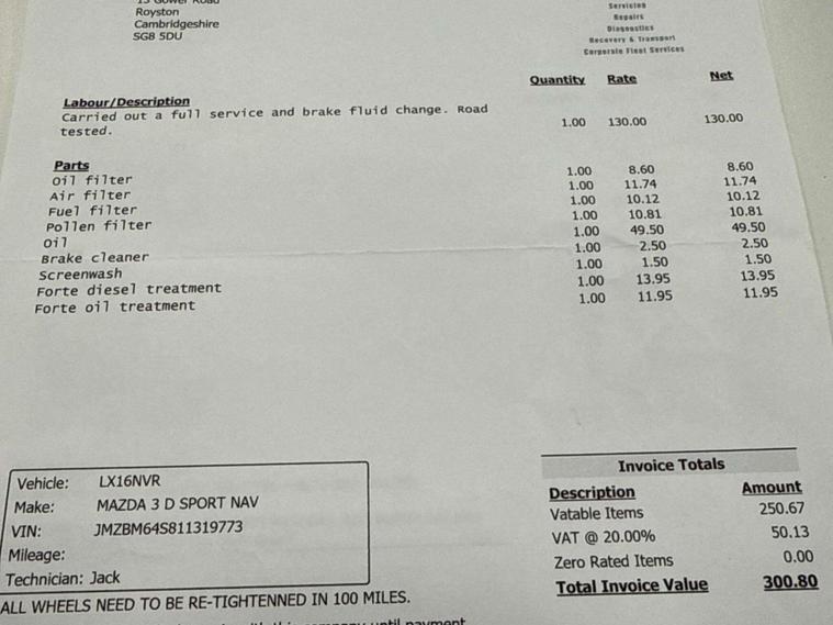 **Mazda Mazda3 1.5 SKYACTIV-D Sport Nav Auto Euro 6 (s/s) 5dr****Registration:** LX16NVR**Year:** 2016 (16)**Mileage:** 91, 280 miles**Fuel:** Diesel**Transmission:** Automatic**Colour:** Blue**Owners:** 3**ULEZ:** Compliant---**Step-by-step vehicle details:**• 91, 280 miles• 3 previous owners• Euro 6 – ULEZ compliant• MOT until February 2027• Partial service history• Last serviced on 10/04/2025 at 82, 415 miles• Clear vehicle history check• **3 MONTHS AA WARRANTY AND 12 MONTHS AA BREAKDOWN COVER****Features and equipment:**• 1.5 SKYACTIV-D diesel engine• Sport Nav trim• Automatic gearbox with paddle shift• BOSE Centrepoint surround sound system (9 speakers)• Dual zone climate control• Bi-Xenon headlights• Front parking sensors• Large practical boot spaceA well equipped and economical automatic hatchback with long MOT, premium BOSE sound system, and excellent running costs. Ideal for comfortable daily driving and longer journeys.**For more available cars:* dealer's website or call:** 01223964083**Postcode:** CB24 9LQ.