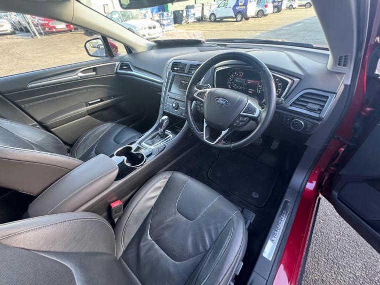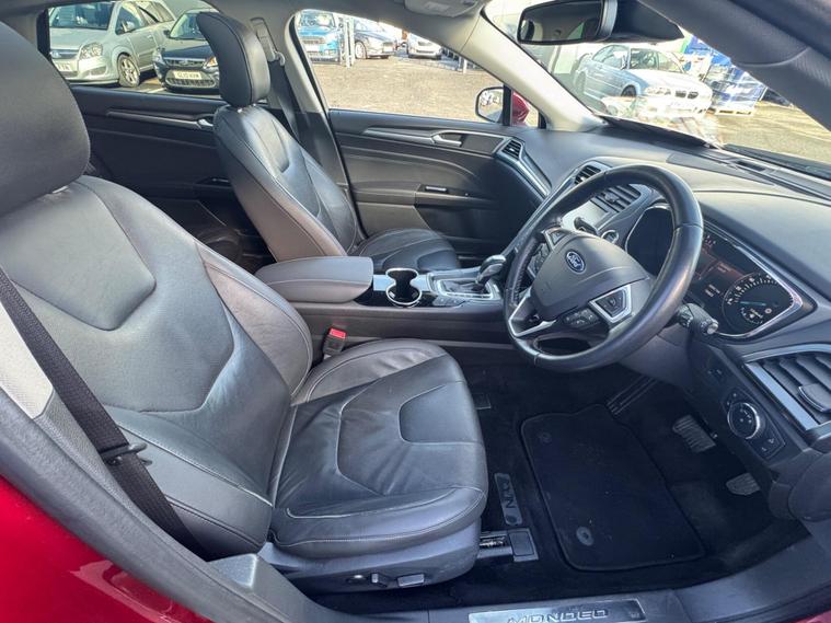 ?APPOINTMENTS ONLY?PLEASE CALL IS ON 02000022087 TO ARRANGE VIEWING?✅2 KEYS, 2 OWNERS, FULL SERVICE HISTORY WITH TIMING BELT AND WATER PUMP REPLACED IN 2025. RECENTLY SERVICED AND LONG MOT. 12 MONTHS AA BREAKDOWN COVER INCLUDED. ✅LOVELY SPEC WITH FULL BLACK LEATHER INTERIOR WITH SEATED AND ELECTRIC SEAT, FULL PANORAMIC ROOF, FRONT AND REAR PARKING SENSORS WITH REVERSE CAMERA. ✅PRESENTED VERY CLEAN THROUGHOUT WITH MINIMAL AGE RELATED WEAR AND TEAR. MECHANICALLY PERFORMS GREAT. PART EXCHANGE WELLCOME, DELIVERY AVAILABLE, CARD PAYMENTS AND FINANCE AVAILABLE. Boasting a full service history and only two previous owners, this 2015 Ford Mondeo TDCi Titanium presents a compelling proposition. Powered by a 2.0L Euro 6 diesel engine, this model offers a smooth and efficient driving experience. It comes with a 3 month warranty for your peace of mind, and the MOT is valid until September 2026, with a clear vehicle history check confirming its sound condition. Notable features include a striking panorama roof with fixed glass, keyless entry for effortless access, and dynamic LED adaptive headlights that illuminate your path intelligently.This Mondeo is equipped with adaptive cruise control, allowing for more relaxed journeys, and a rear view camera to assist with parking. With a respectable 0-62mph acceleration time of 8.6 seconds, it offers responsive performance. The mileage of 90, 700 miles is considered low for its age, further enhancing its appeal. You'll also appreciate the generous boot space, making it ideal for families or those who need ample room for luggage. These factors combined indicate that this Mondeo offers a superior ownership experience compared to many others on the market..