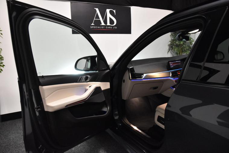 We are pleased to offer this stunning BMW X5 finished in metallic Arctic grey with contrasting ivory leather interior. This car has covered just 65, 000 miles from new complete with full service history. The huge list of this with this car includes 22 inch wheels, privacy glass, 360 degree cameras, heads up display, rear seat entertainment, Harman Kardon audio, M-performance body styling, power tailgate, fully electric front seats, heated front seats, technology package, cruise control, blue tooth phone connection, Apple car play, Android auto, configurable ambient lighting, LED headlights, auto lights and wipers, Pirelli P-Zero tyres all round and much more..