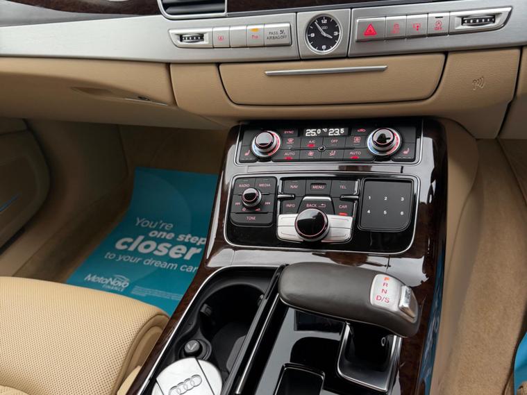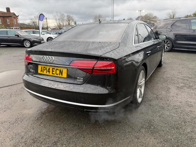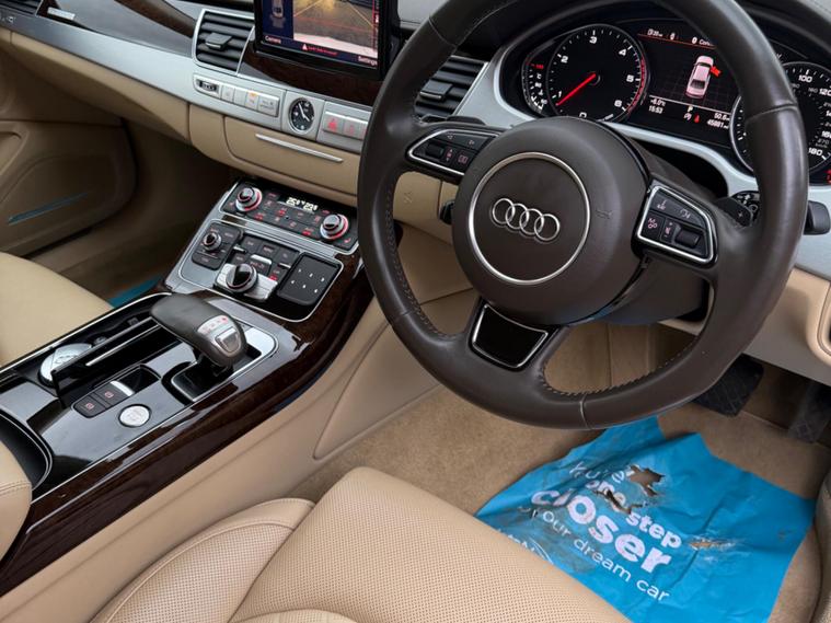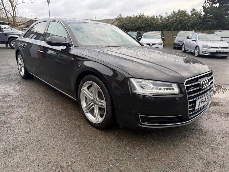 This 2014 Audi A8 TDI V8 Sport Executive presents an exceptional opportunity with its remarkably low mileage of just 46, 373 miles. This four wheel drive saloon, powered by a potent 4.2 litre diesel engine, meets Euro 6 emissions standards. Inside, you will find Comfort Sports seats with memory function, a slide and tilt electric sunroof, and a deluxe four zone climate control system that includes a rear comfort centre armrest. For your convenience and enjoyment, this A8 also features a front camera for parking assistance and a BOSE surround sound system, all contributing to a refined driving experience.The performance of this Audi A8 is truly impressive, achieving 0 to 62 miles per hour in a swift 4.9 seconds, a figure that highlights its dynamic capabilities. This acceleration, combined with its substantial boot space, demonstrates how this vehicle offers a superior blend of power and practicality compared to similar models. The Sport Executive trim ensures a high level of specification, making this Audi A8 a distinguished choice for those seeking luxury and performance..