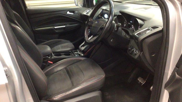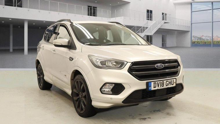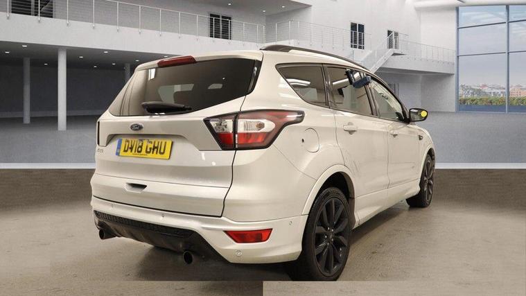 01 FORMER KEEPER, 06 SERVICES BY FRD, MOT 10/10/2026, SPARE KEY, This 2018 Ford Kuga TDCi ST-Line X boasts a clear vehicle history, offering you peace of mind. This Four Wheel Drive model is powered by a 2.0 litre diesel engine and meets Euro 6 emission standards. It comes equipped with automatic halogen headlights featuring LED daytime running lights, keyless entry with a hands free power tailgate, and enhanced active park assist with front and rear sensors. Inside, you'll find DEATC dual zone electronic automatic temperature control for your comfort and a power opening panoramic roof. The ST-Line X trim level signifies a higher specification, indicating this Kuga offers more than many similar vehicles. Its low CO2 emissions are a notable highlight, contributing to more economical running costs. The combination of its advanced features, robust engine, and four wheel drive capability makes this Ford Kuga a well rounded and capable choice..