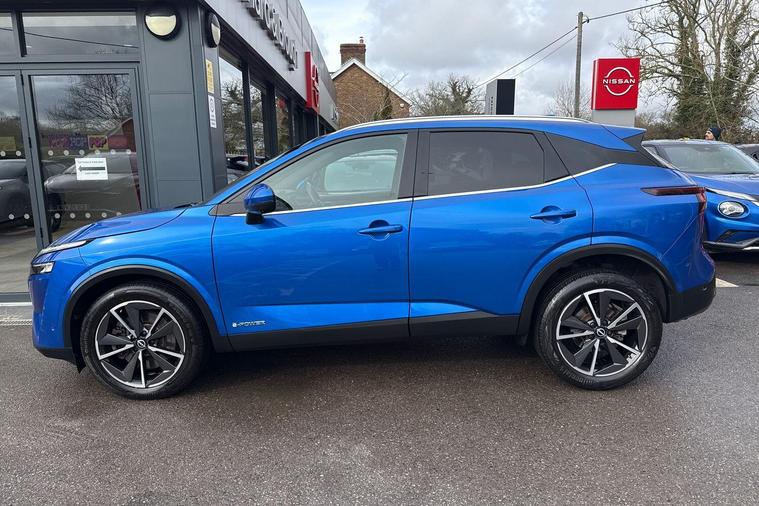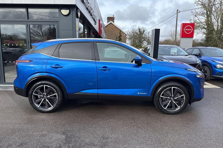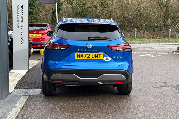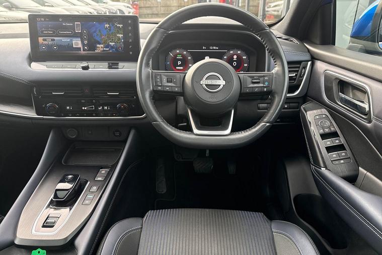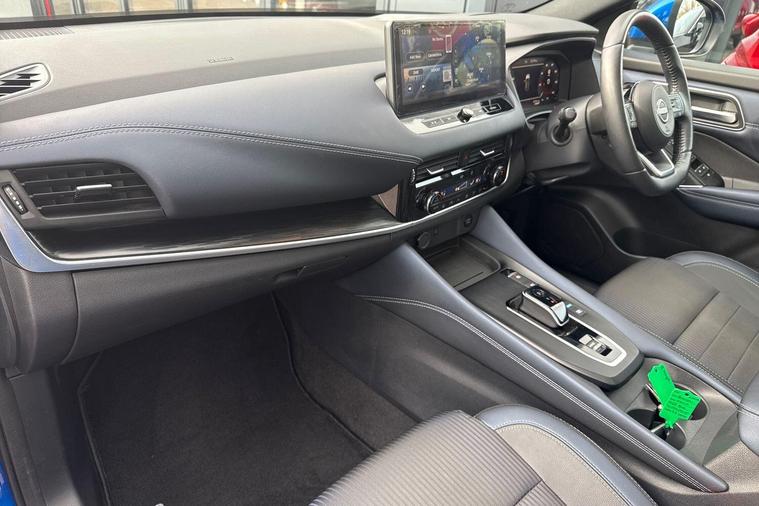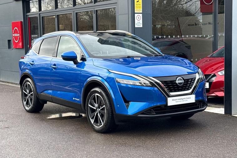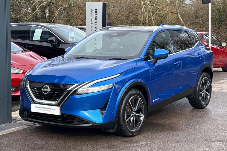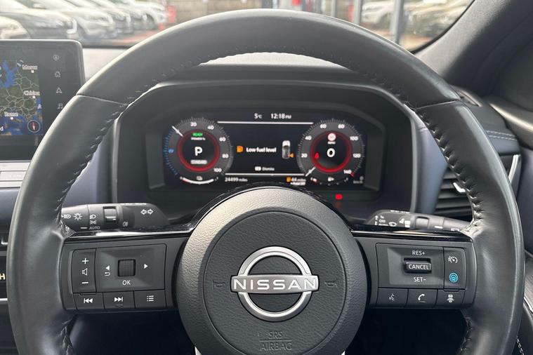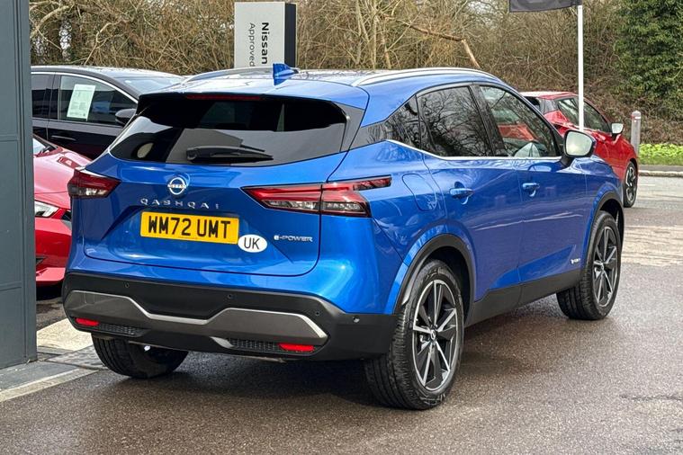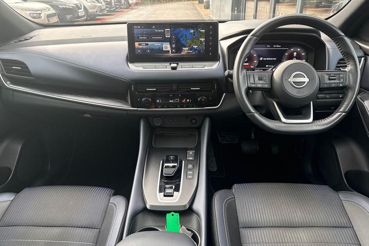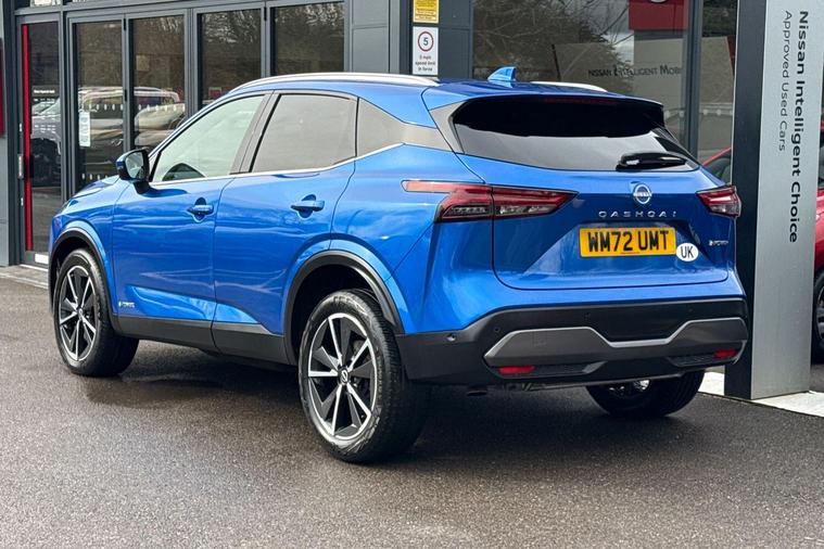 This 2023 Nissan Qashqai h e-POWER Tekna is a superb example, having had only one owner since new. This stylish Tekna trim features a 1.5 litre petrol hybrid engine, meeting Euro 6 emission standards. You'll appreciate the convenience of Bluetooth with audio streaming and wireless Apple CarPlay, alongside the advanced windscreen head up display. Safety is enhanced with Blind Spot Warning and Intelligent Cruise Control, making every journey more relaxed and secure.Experience impressive performance with a swift 0-62mph acceleration in just 7.9 seconds, all while benefiting from low CO2 emissions. This Qashqai also boasts an excellent fuel economy of 53 mpg, demonstrating its efficiency compared to similar vehicles. Furthermore, you'll find ample practicality with its large boot space, perfect for all your needs..