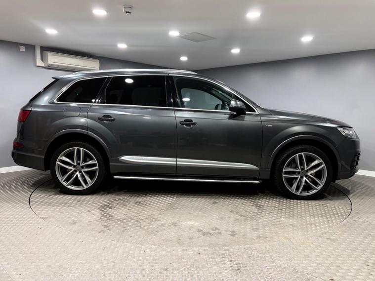This Q7 has recently been serviced by ourselves and will have a fresh MOT as part of our internal preparation, finished in metallic Daytona grey with black part leather interior and supplied with 2 keys. Notable features include practical Running Boards for easier access, Electrically Adjustable Front Seats with 4 Way Lumbar Support and a Driver Memory Function for personalised comfort. Long journeys are made more enjoyable with the Audi Phone Box offering Wireless Charging and Bluetooth connectivity, alongside Dual Zone Electronic Climate Control to maintain the perfect cabin temperature.The Q7 TDI V6 S line stands out with its impressive acceleration, reaching 0-62mph in just 6.3 seconds, demonstrating its dynamic capability. This performance, combined with its Euro 6 rating and a substantial towing weight of 3500 kg, positions it as a highly capable and versatile vehicle. Furthermore, its placement in a low insurance group highlights its cost effectiveness for owners. These attributes collectively indicate that this Audi Q7 offers a superior ownership experience compared to many other vehicles in its class..