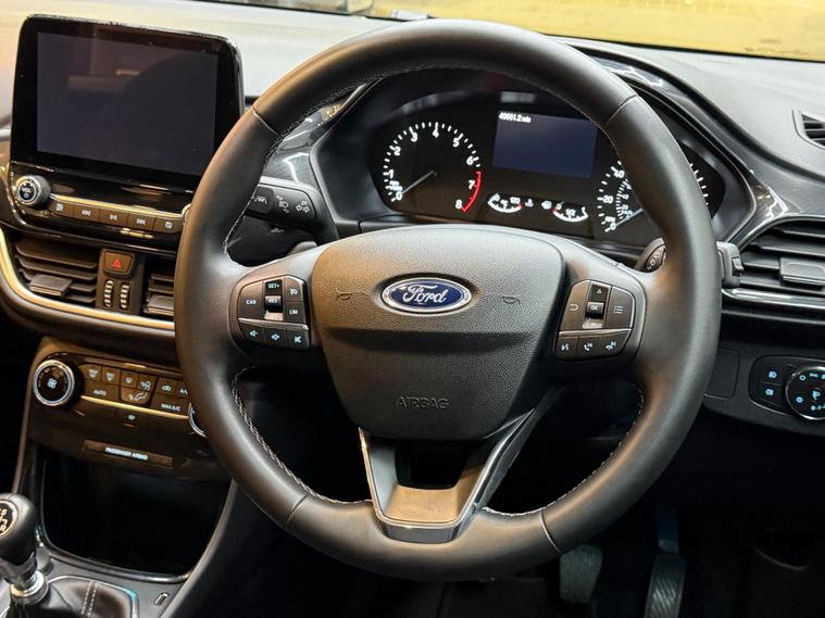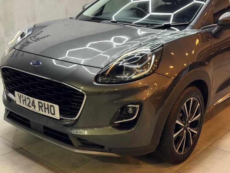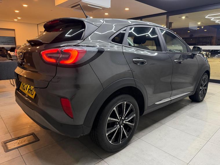 This 2024 Ford Puma T Titanium is a superb example, having had only one owner since new. This stylish compact SUV features a responsive 1.0L Petrol Hybrid engine, meeting the Euro 6 emission standards. Inside, you'll find comfort and convenience with Electronic Air Temperature Control, ensuring a pleasant cabin environment. For seamless connectivity and entertainment, the Ford SYNC 3 Navigation system is included, offering Android Auto, Apple CarPlay, and Bluetooth functionality. Parking is made easier thanks to the Rear Parking Sensors and Parking Assistance system.The Ford Puma T Titanium stands out with its impressive fuel economy, achieving a highlight of 52 miles per gallon, which is better than many similar vehicles. Furthermore, its low CO2 emissions contribute to a more environmentally conscious drive. This combination of efficient hybrid technology, advanced features, and excellent fuel economy makes this particular Puma a compelling choice for those seeking a modern and practical vehicle..