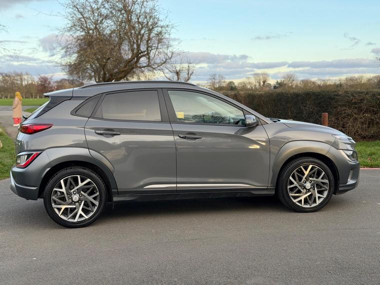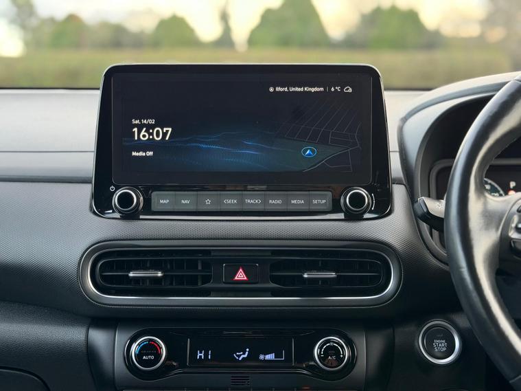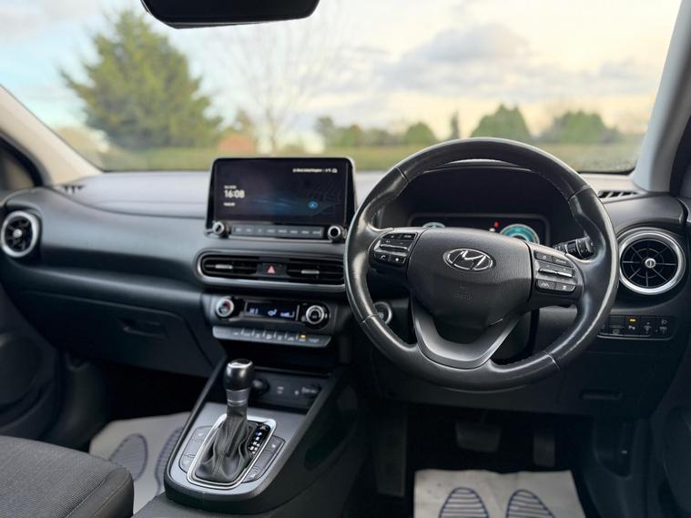 This 2021 Hyundai KONA h GDi Premium offers an exceptional blend of efficiency and comfort, making it a standout choice. This Euro 6 compliant model boasts a 1.6 litre petrol hybrid engine, delivering an impressive fuel economy of 57 miles per gallon. The Premium trim level ensures a well equipped driving experience, featuring a heated steering wheel for those chilly mornings, and automatic headlights that activate with a dusk sensor. Stay connected and entertained with Android Auto compatibility, and enjoy the convenience of front parking sensors and a wireless phone charging pad.The Hyundai KONA h GDi Premium is designed to be economical to run, with highlights that set it apart from other vehicles in its class. Its low CO2 emissions contribute to a more environmentally friendly drive, and it sits within a low insurance group, which can help to reduce your annual running costs. These factors combined with its excellent fuel efficiency make this KONA a smart and practical option for everyday use..