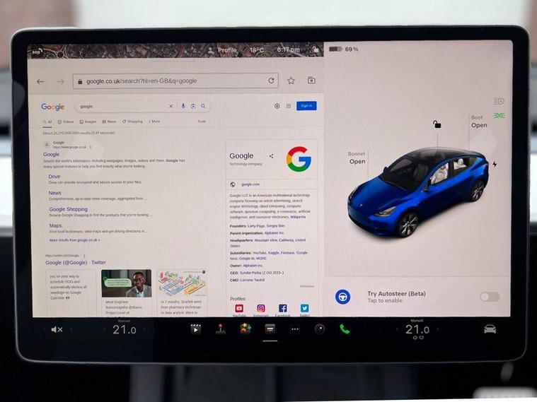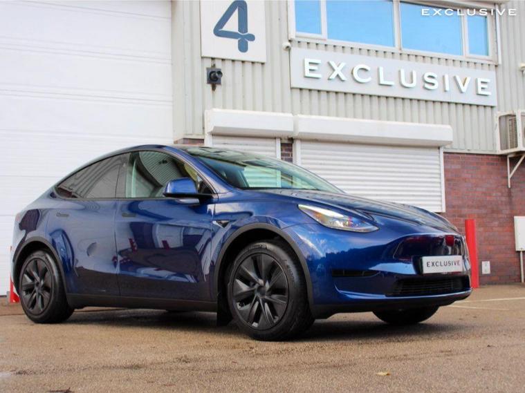 VAT QUALIFYING - £29, 541.67 + £5, 908.33 VAT ---|--- We are delighted to present this, 1 owner, , 25 plate, Tesla Model Y Long Range AWD Dual Motor benefitting from c. £2, 400 worth of optional extras including metallic Deep Blue paintwork, and tow hitch (tow bar). With a list price of circa £54, 500, there is significant savings from list price! ---|--- This 2025 Tesla Model Y also has additional benefits such as the Hardware 4 which includes improvements on the cameras and autopilot functionality.--|--Say hello to the Tesla Model Y, which should appeal to buyers looking for extra SUV practicality, with the capability of achieving c.331 miles WLTP driving range on a full charge and ability to achieve a staggering 0-60mph in just 4.8 seconds. -|-TESLA WARRANTY UNTIL 03/2029 AND BATTERY WARRANTY UNTIL 03/2033--|--The Model Y has an extensive specification including: autopilot, satellite navigation , surround cameras, panoramic roof, electric tailgate, heated front and rear seats, premium connectivity, premium black leather, premium audio system, supercharger enabled, and more.-|- Inside, the Model Y has the same minimalist interior, focused around a high-res 15-inch touchscreen in the middle of the dashboard. A taller roof means there's more space and headroom inside the Model Y, while its hatchback boot is much more useful for loading luggage or sports equipment. ---|---With a practical and reliable range, fast charging capability, plenty of space and user-friendly onboard technology, the Model Y will appeal to buyers who need to take care of the family or work basics, but who also want the curb appeal and badge kudos that Tesla provides. We think that owning this car is akin to owning an Apple product, simple yet brilliant in both form and function and seldom out of date thanks to its over the air updates. Yep. Instead of having to go to a dealer or service centre to get your car updated ---|--- *Other features and upgrades can be added from Tesla such as:Full self driving Enhanced Autopilot 20'' induction alloys.