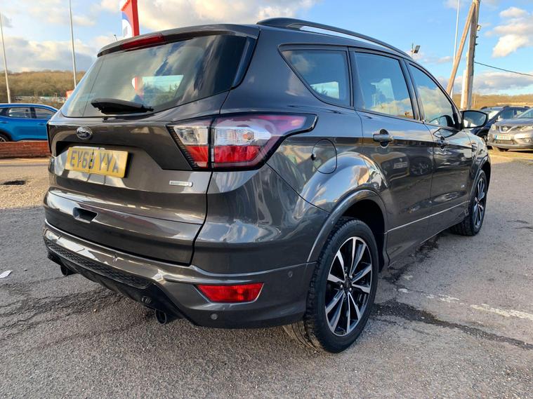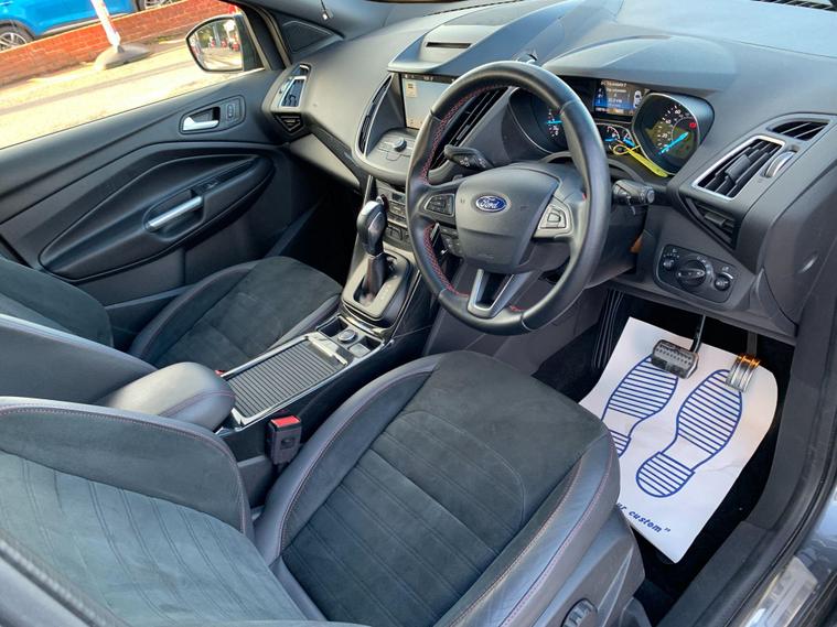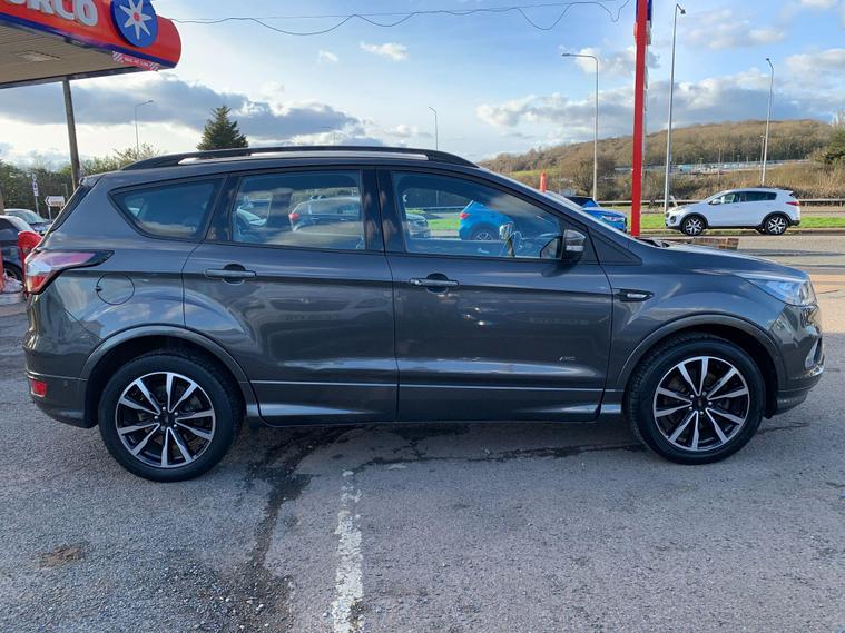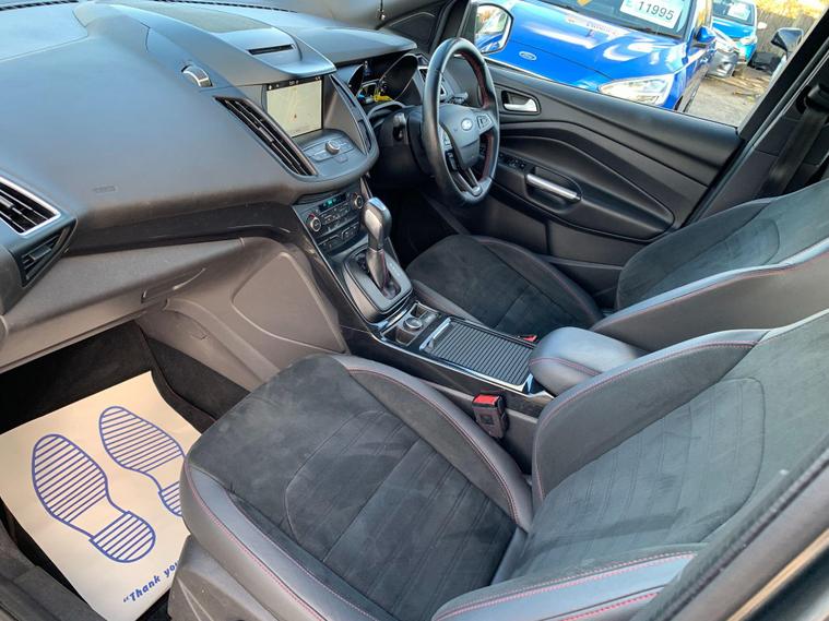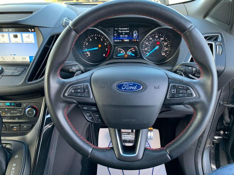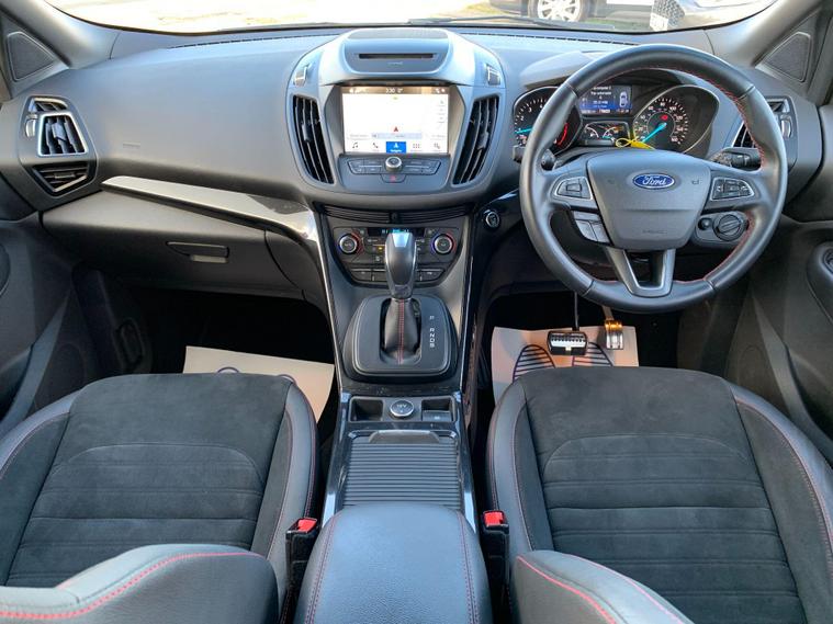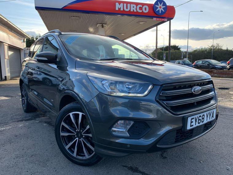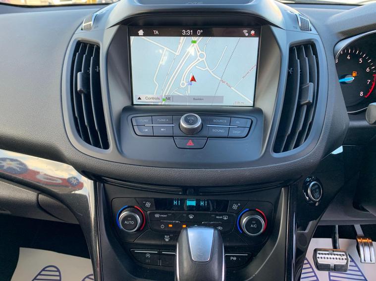 This 2018 Ford Kuga T ST-Line offers a compelling blend of style and capability. Powered by a 1.5 litre petrol engine and featuring Four Wheel Drive, this Euro 6 compliant model is equipped for a variety of driving conditions. Inside, you'll find the convenience of Dual Zone Electronic Automatic Temperature Control, ensuring comfort for all occupants. For effortless manoeuvring, it boasts Enhanced Active Park Assist, complete with front and rear parking sensors, alongside rear parking sensors for added peace of mind. The Ford SYNC3 DAB Navigation System keeps you connected and on track, with seamless integration for both Android Auto and Apple CarPlay, plus Bluetooth connectivity.The ST-Line trim level enhances the sporty appeal of this Kuga, setting it apart from other vehicles in its class. The inclusion of advanced parking assistance systems, such as the Enhanced Active Park Assist, demonstrates a commitment to driver convenience and safety that goes beyond the standard offering. Furthermore, the integrated Ford SYNC3 system with navigation and smartphone mirroring capabilities provides a modern and user friendly experience, highlighting the thoughtful technology packed into this capable Ford SUV..